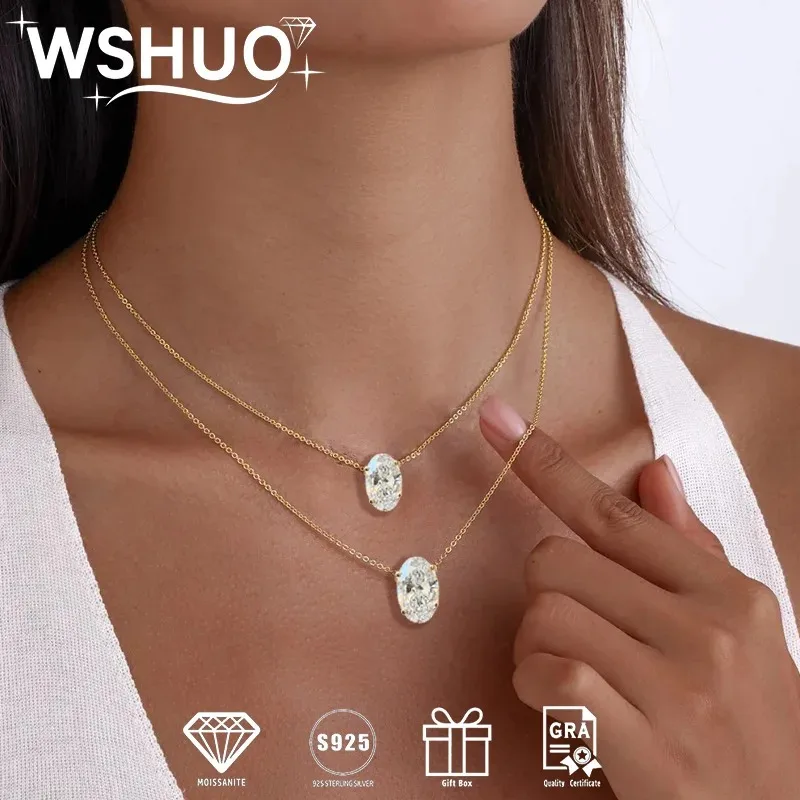 1/2/3 Carat Oval Cut Moissanite Pendant Necklace 100% S925 Silver Solitaire Diamond Women‘s Fi...