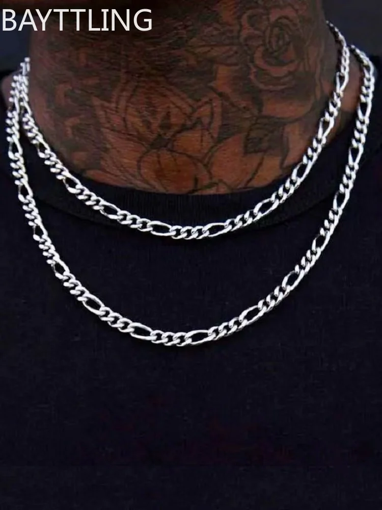 2/4/6 mm 925 sterling silver Men Figaro Chain Necklace Punk Basic Chain Necklace For Women Hip Hop J...