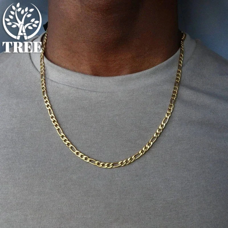 SHSTONE 18k Gold Figaro Cuban Chain Width 2/3/4/6 MM Men Necklace 9...
