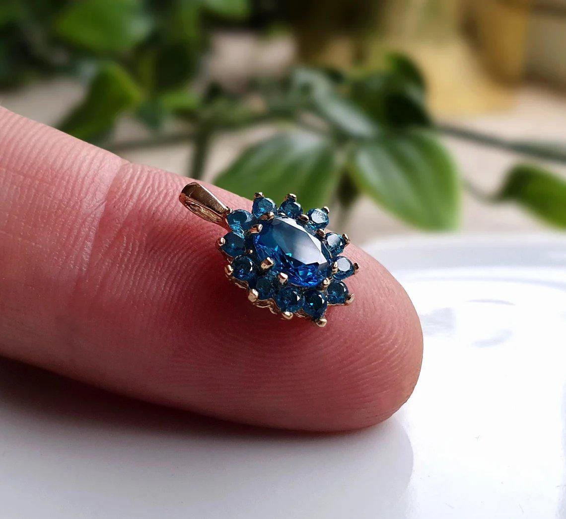 ABSOLUTELY STUNNING Vintage Solid 9ct Gold Blue Topaz Cluster Penda...