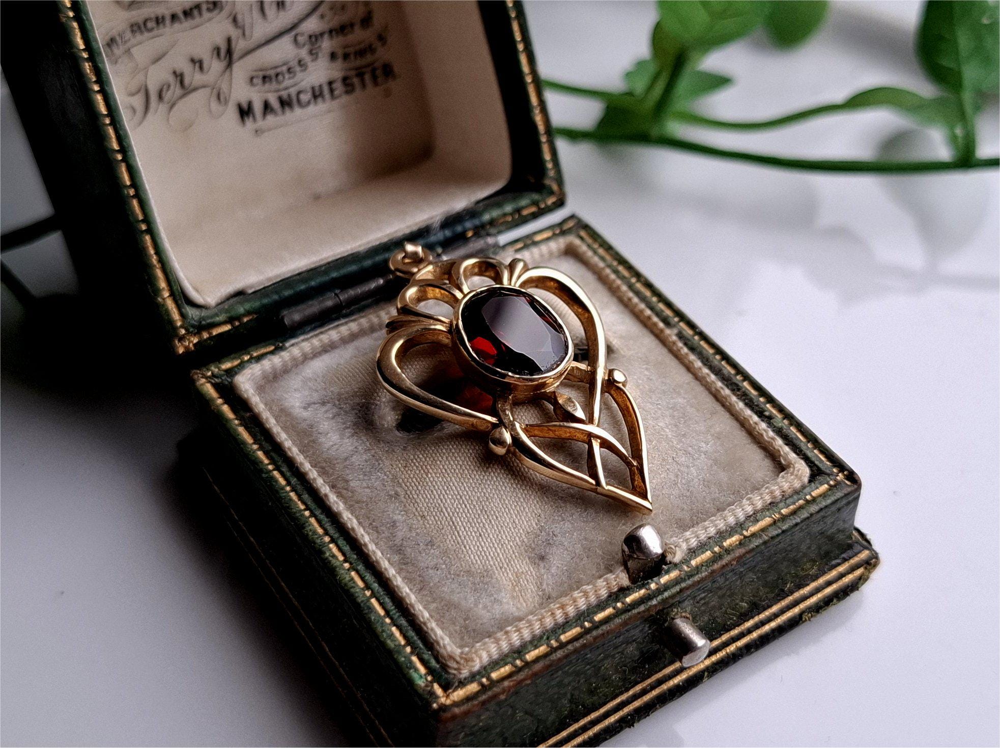 PRETTY Vintage 9ct Gold Garnet Pendant. STATEMENT PIECE 9ct Gold Ga...