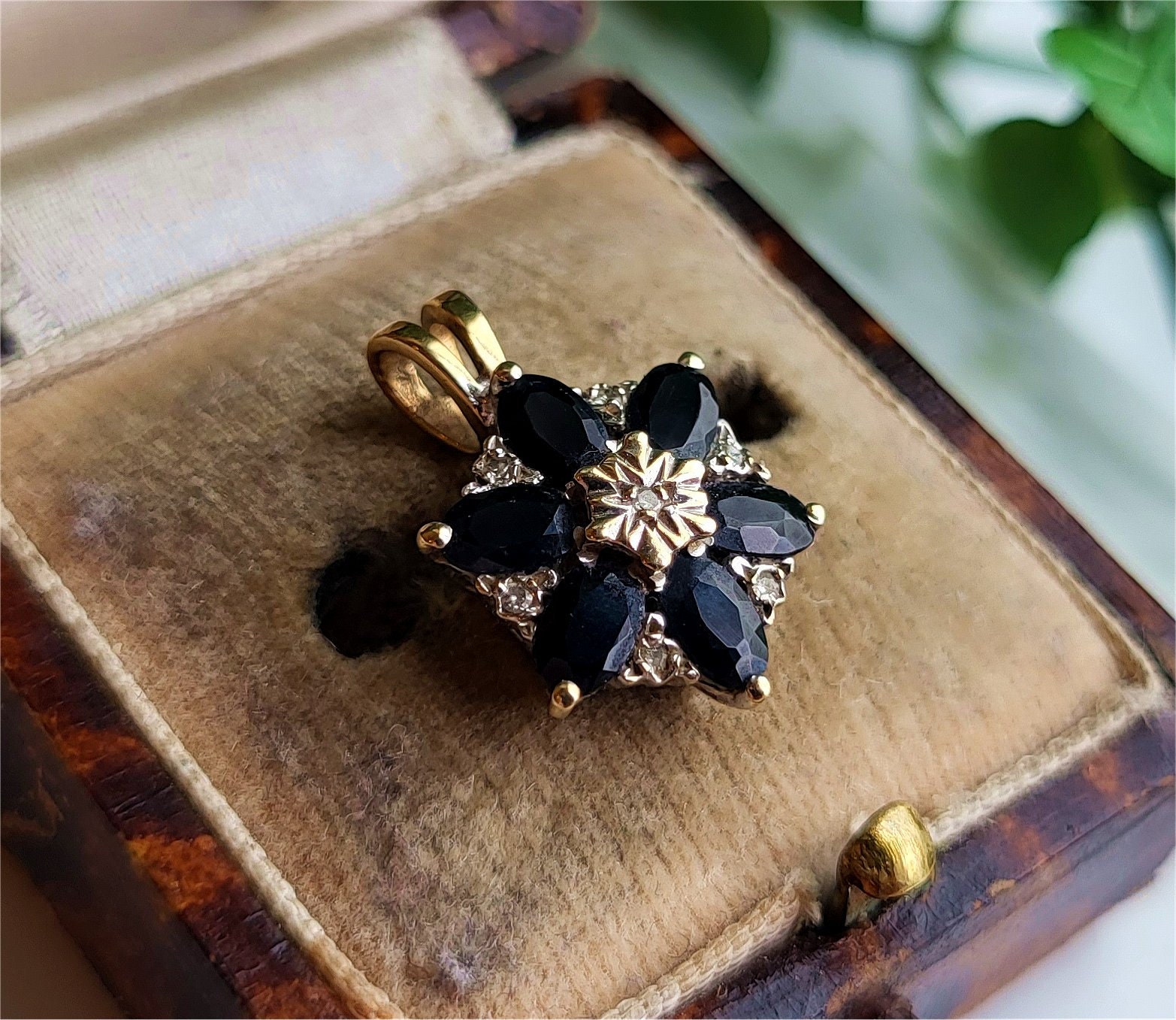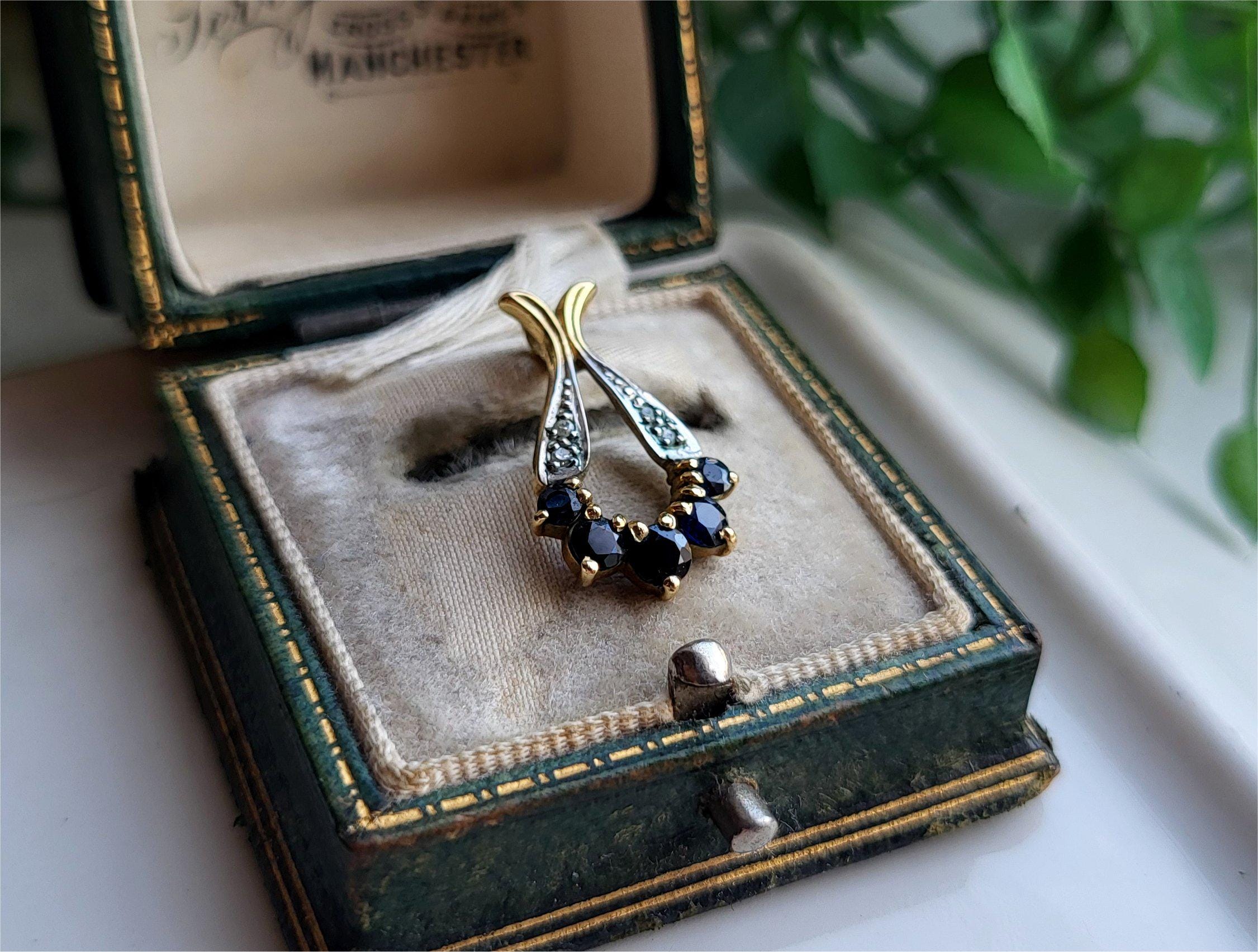 QUALITY Genuine Vintage 9ct Gold Sapphire And Diamond Pendant Six Beautiful Sapphires with 7 Diamond...