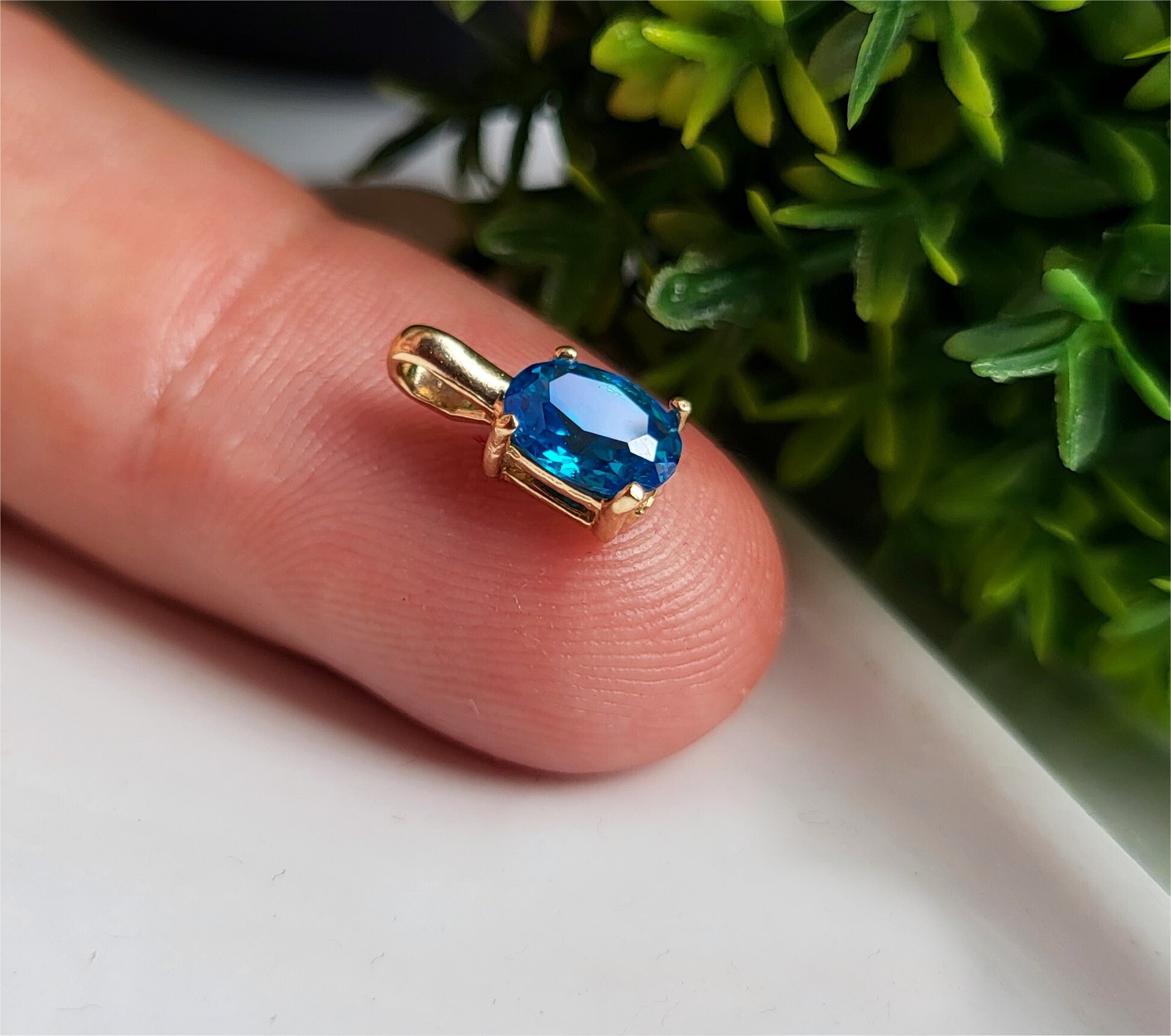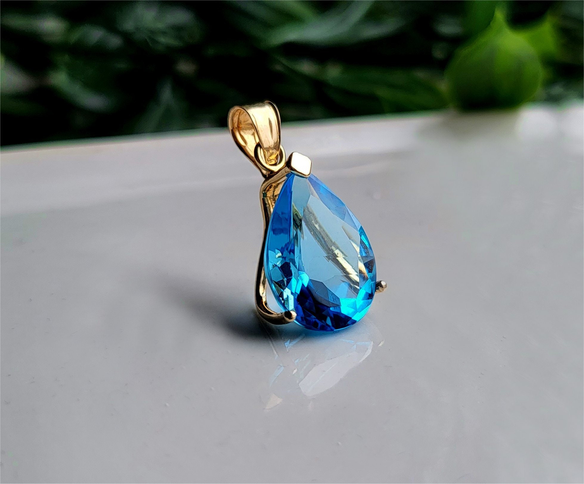 PRETTY Vintage 9ct Gold Blue Topaz Pendant. 9ct Gold Pendant, Vinta...