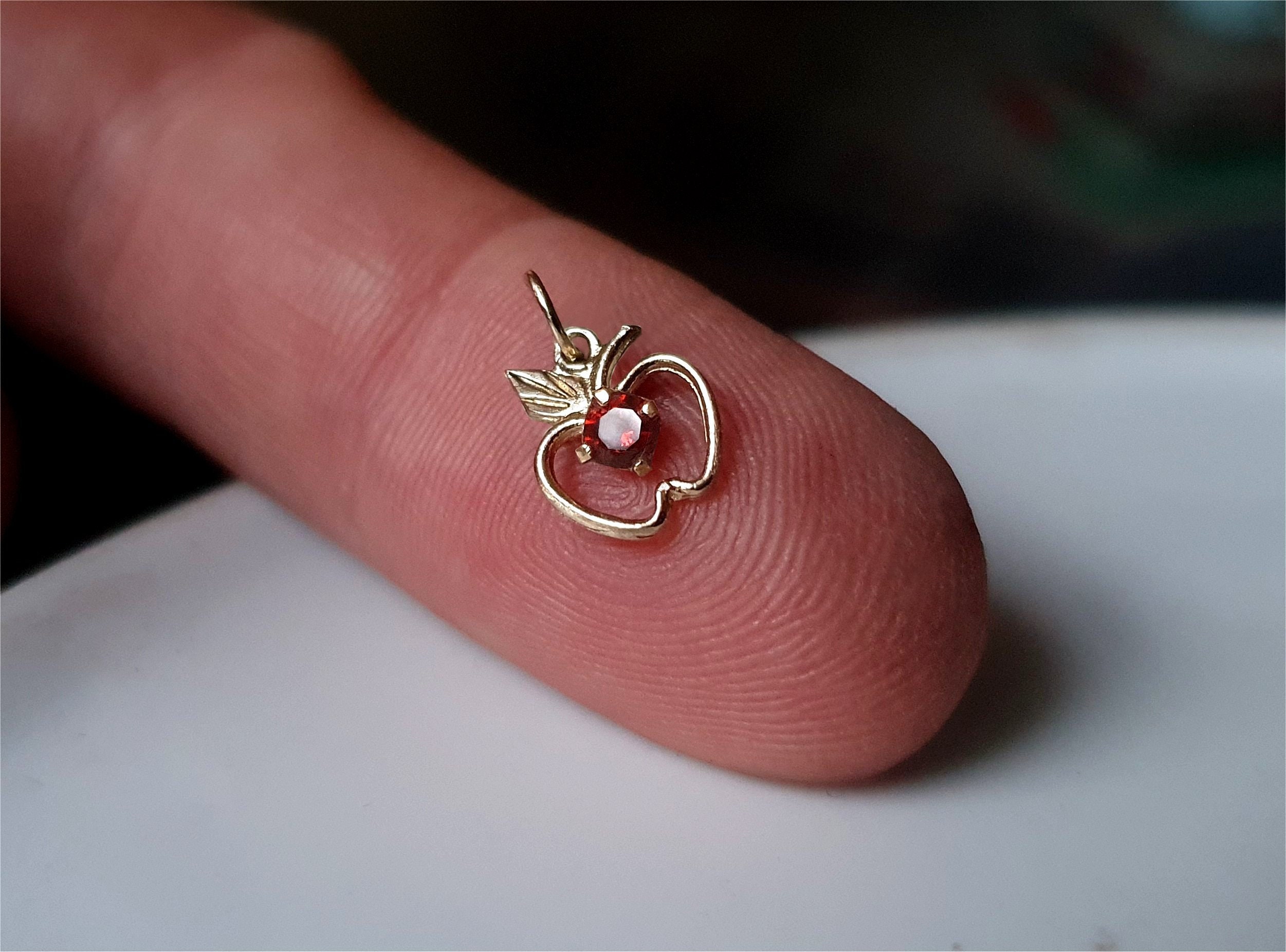 GENUINE SOLID 9CT GOLD... UNUSUAL and Very Pretty Genuine Vintage Solid 9ct Gold Garnet Apple Charm ...