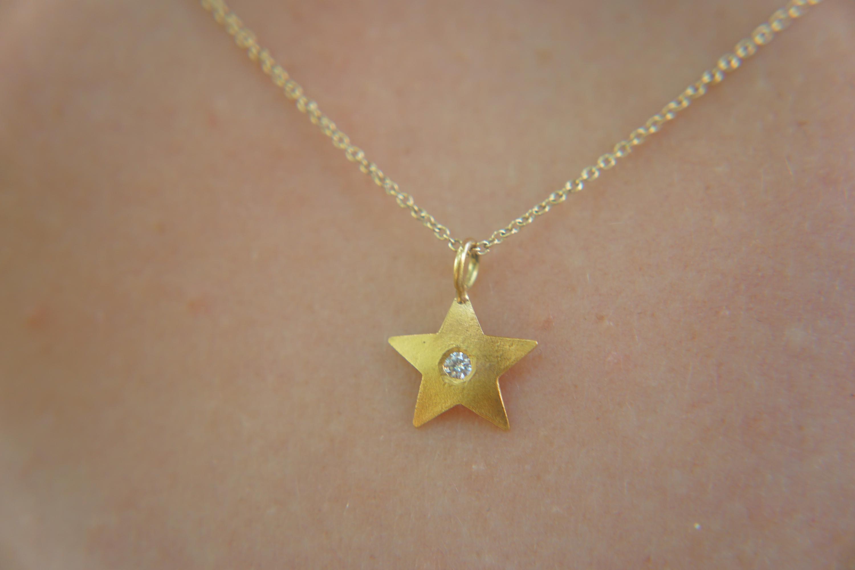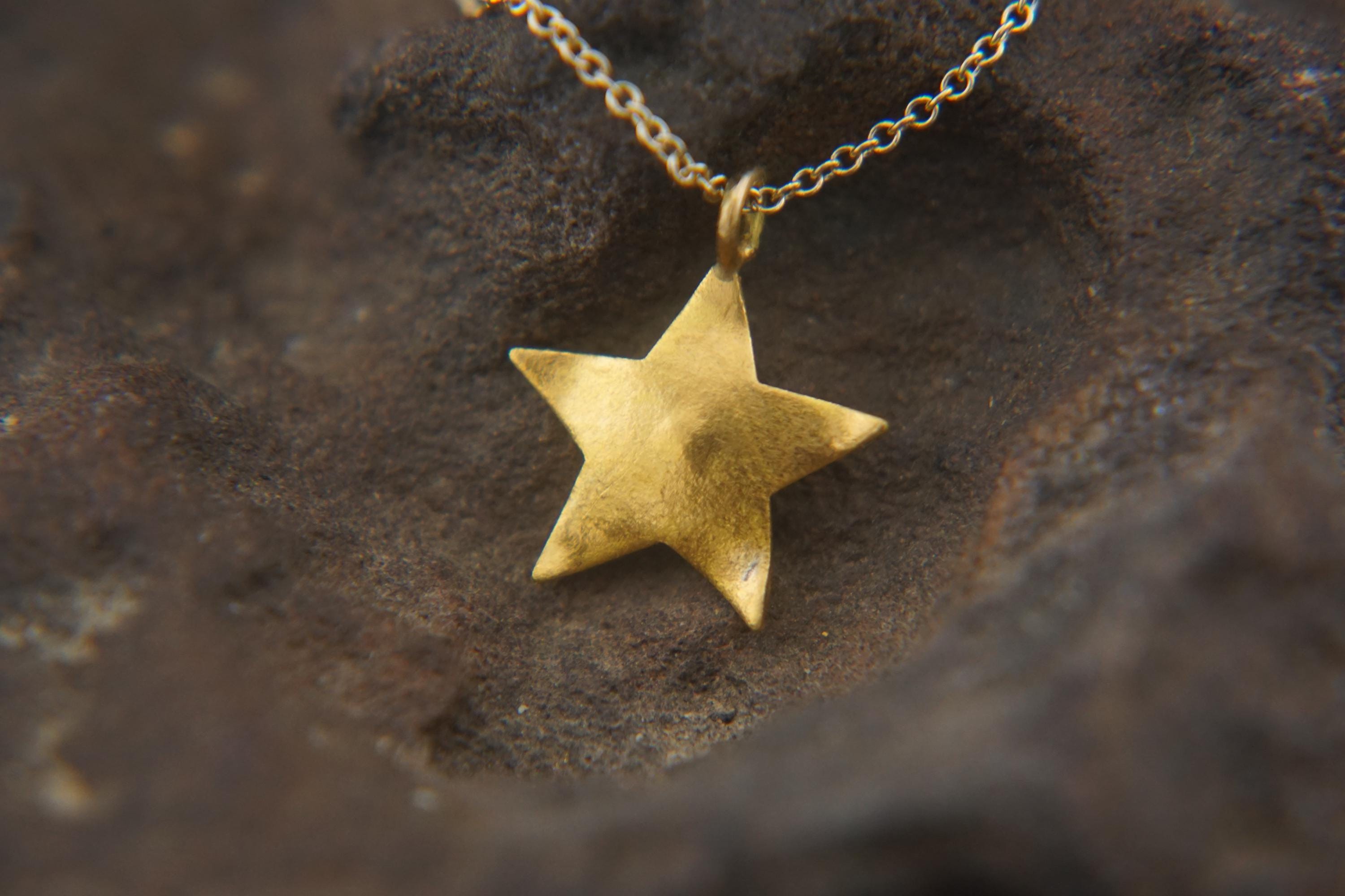 solid 24k gold pendant//gold star necklace//gold star pendant//soli...