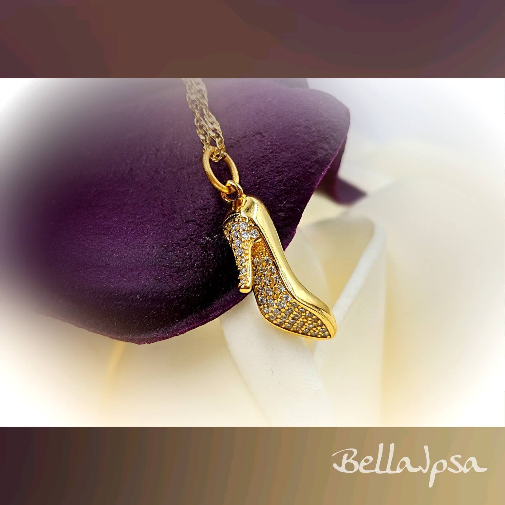 "Beautiful 925 silver necklace in gold -- a lovely high heel shoe! A stunning piece sure to gra...