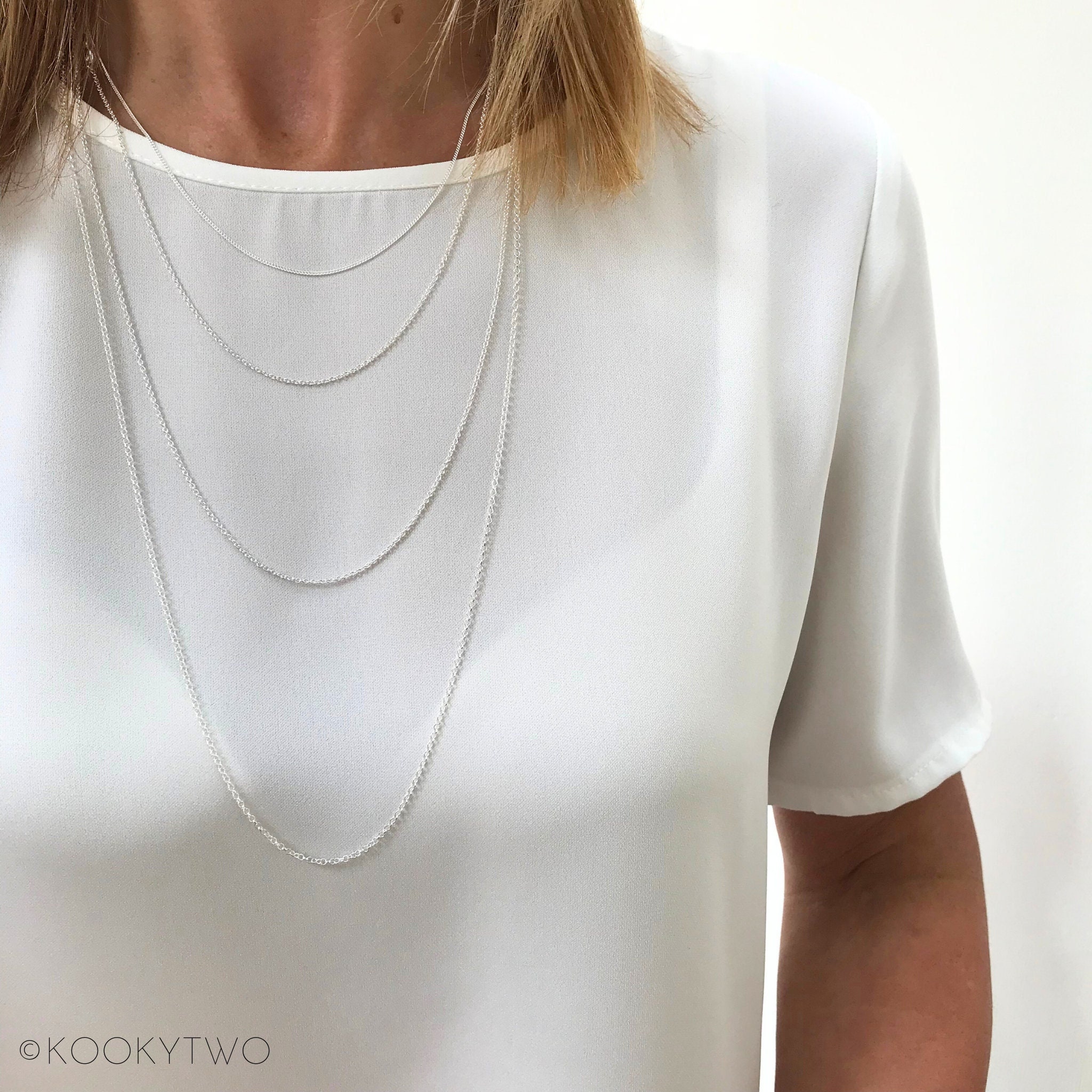 Silver Chain Necklaces, Sterling Silver Chains, Simple Chains, No C...