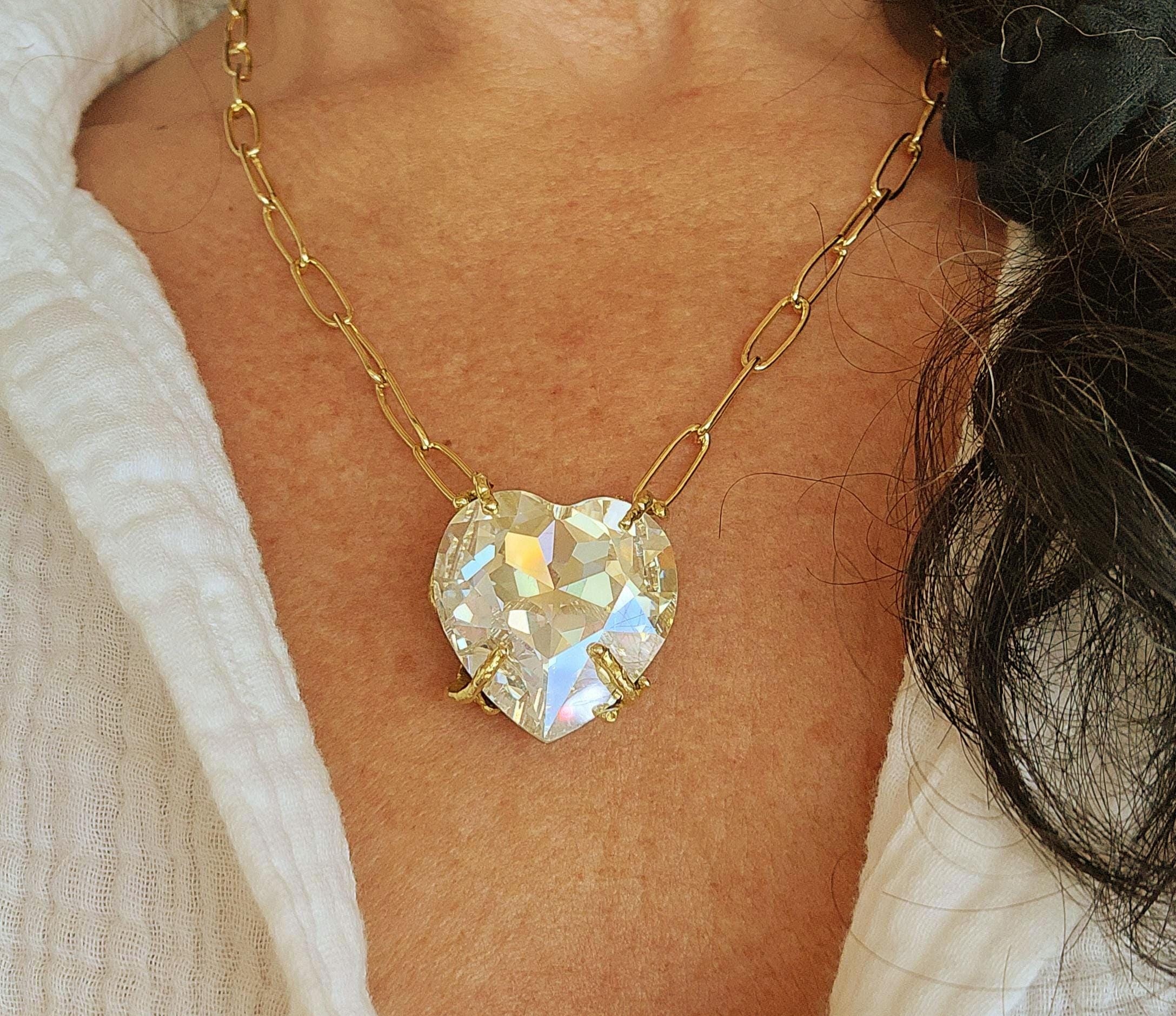 Chunky Swarovski Y-shaped necklace, big Swarovski tie necklace, thi...