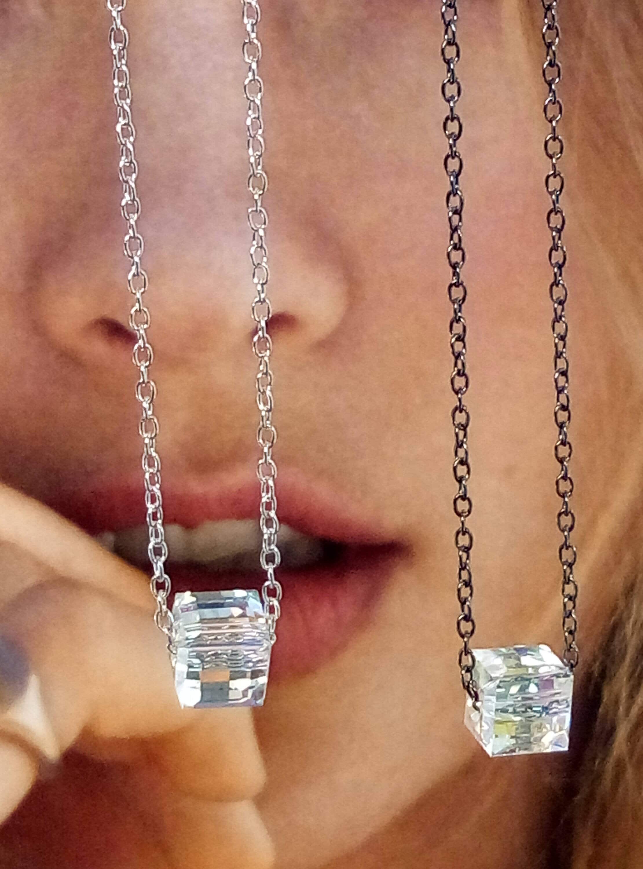 Cute necklace handmade with gray Swarovski crystal geometric bead, silver plated findings and chain....