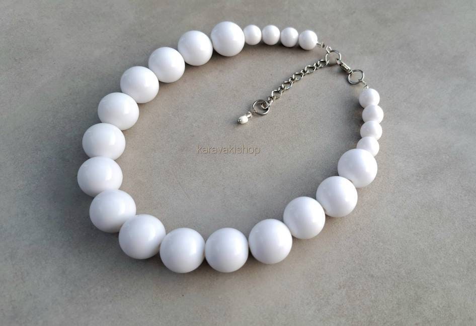 White chunky necklace, White jewelry,White Statement necklace, Retr...