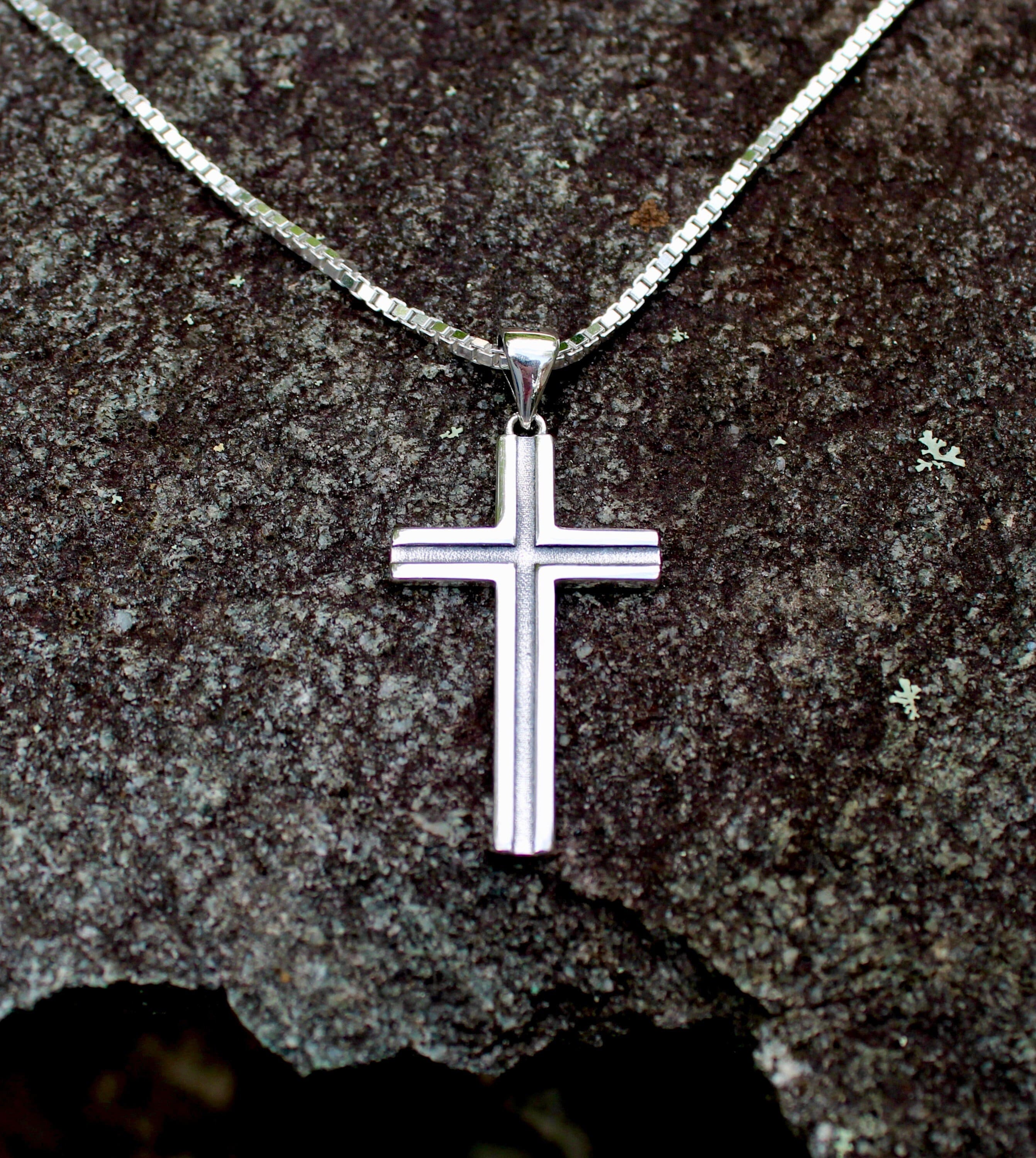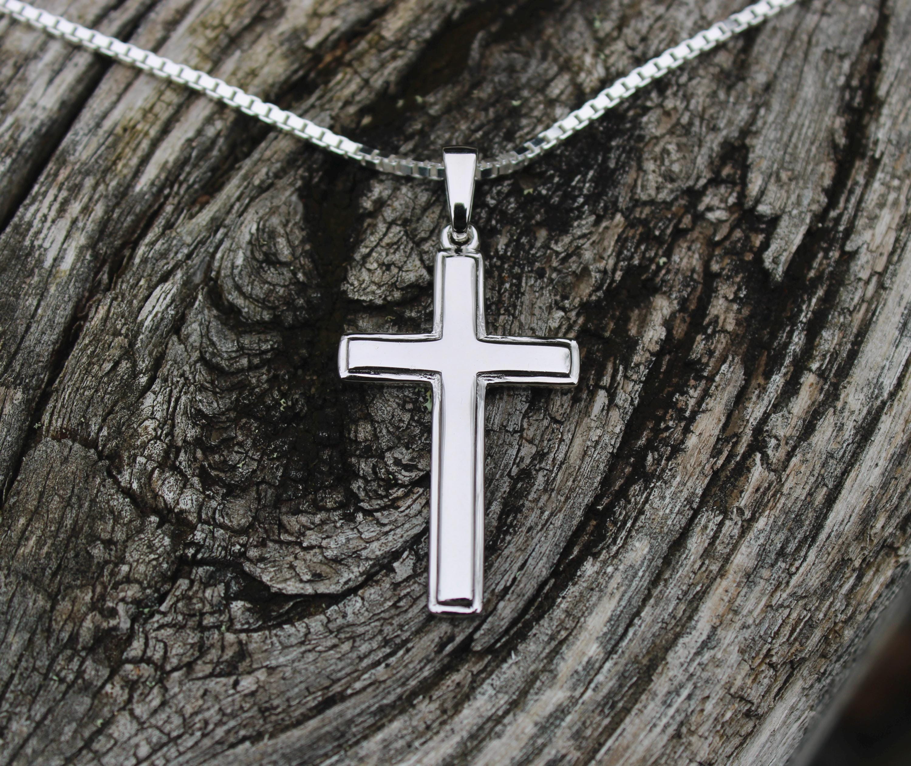 "MENS|LADIES Simple Sterling Silver Cross Necklace, 925 Sterli...