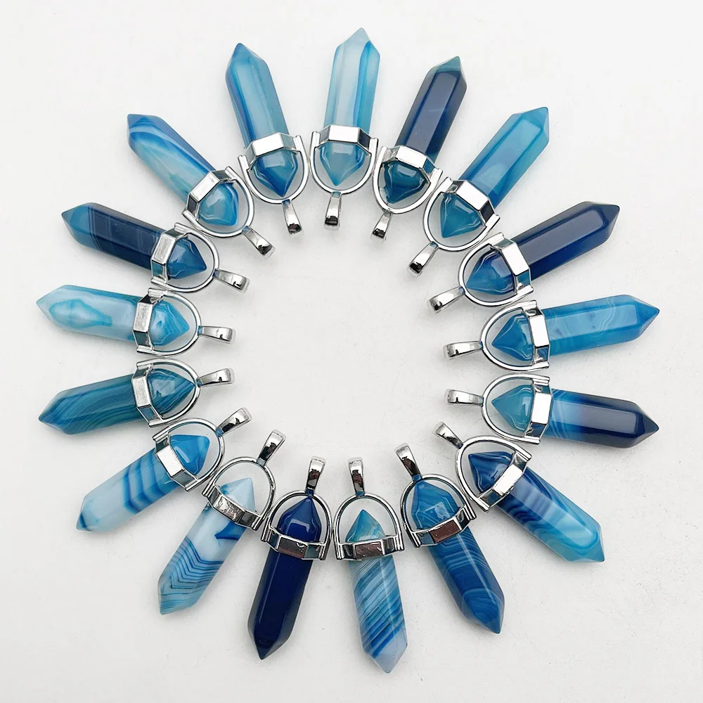 fashion new natural stone Blue striped agates Pendants necklace for making Jewelry charm Pendulum ac...