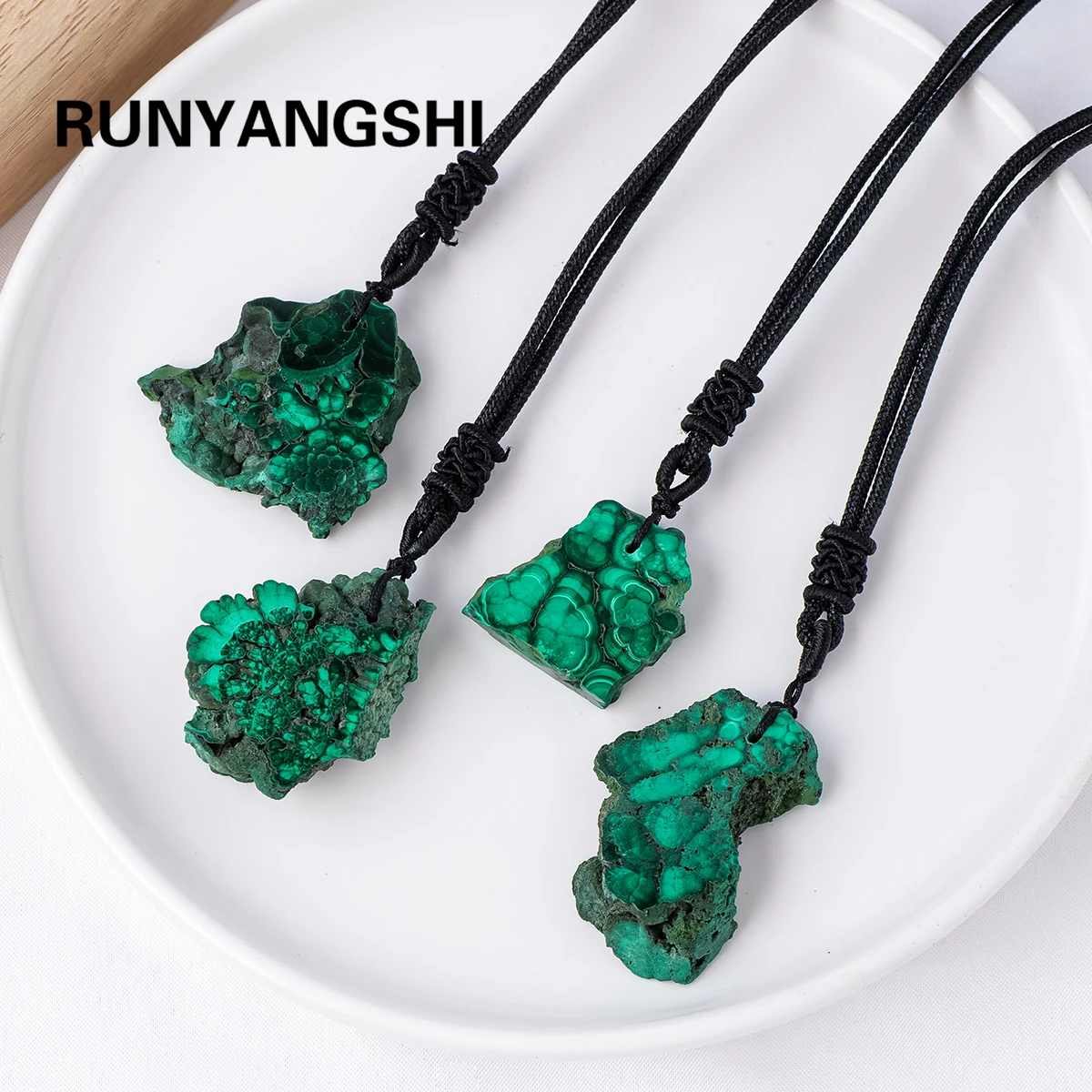 1PC Natural Crystal Quartz Green Malachite Slab Raw Stone Pendant Irregular Gem Necklace Women Men G...