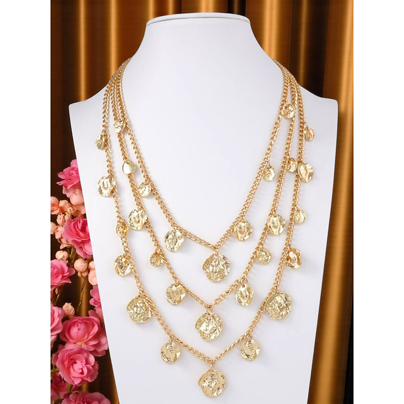 Women's Multi-Layer Gold Coin Necklace - Textured Metal Statement C...