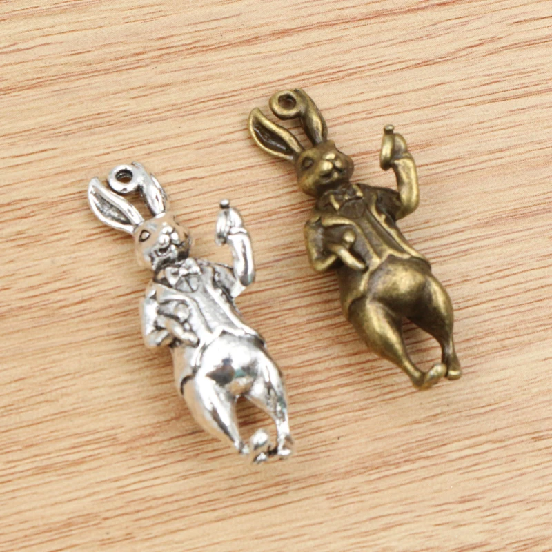 3pcs 37x14mm Antique Bronze and Antique Silver Plated Rabbit Handmade Charms Pendant:DIY for bracele...
