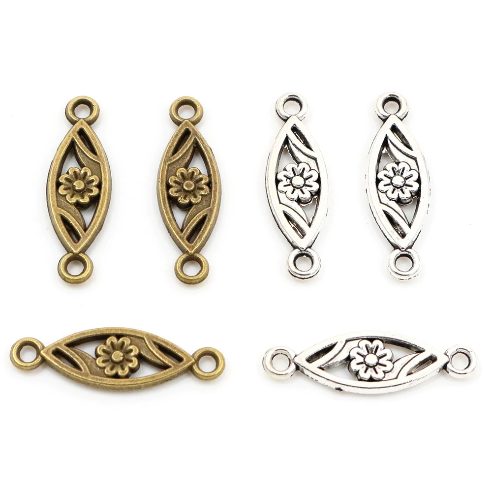 23x7mm 20pcs Antique Bronze and Antique Silver Plated Flower Style Connector Handmade Charms Pendant...