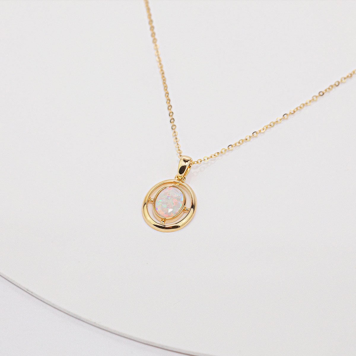 Opal Necklace,Lab Created Australian Opal Gemstone Necklace,Opal Pe...