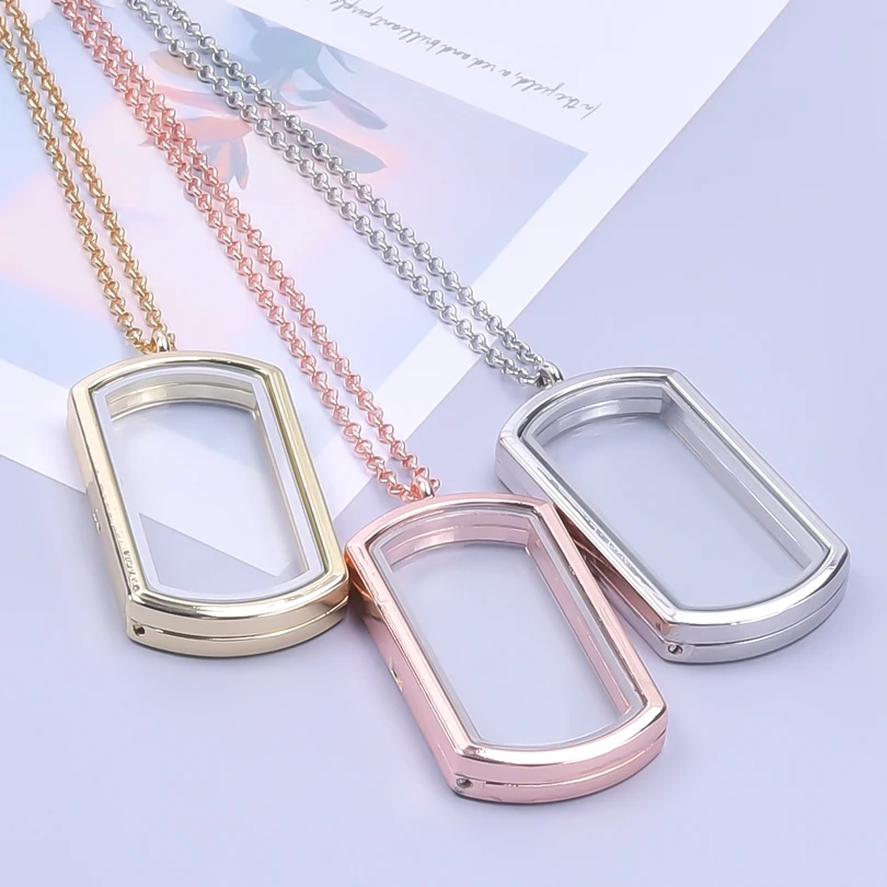 Geometry Rectangle Pendant Glass Lockets Necklaces For Women Men Accessories Chain Around Neck Metal...