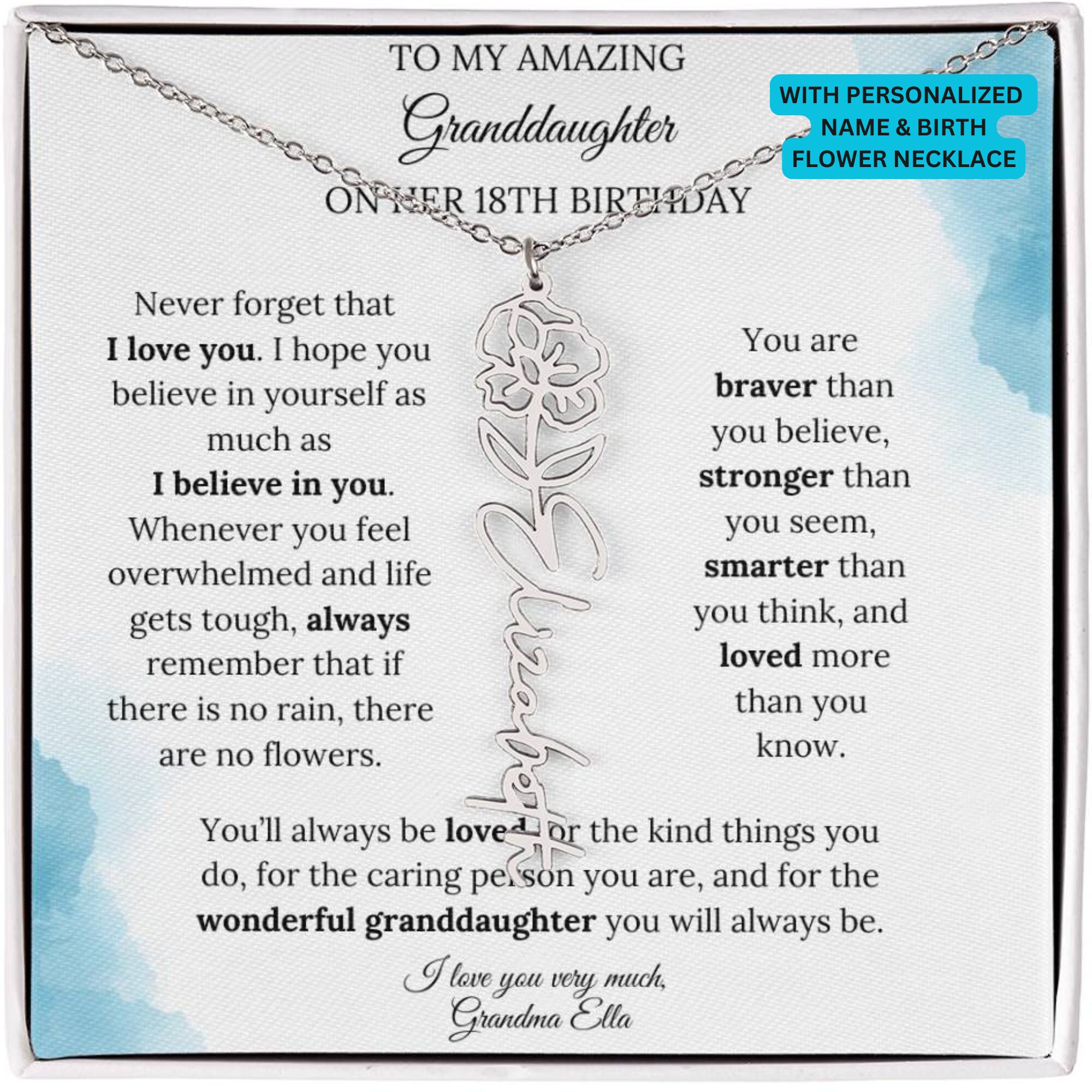 Granddaughter Gifts For 18th Birthday, Birthmonth Flower Name Neckl...