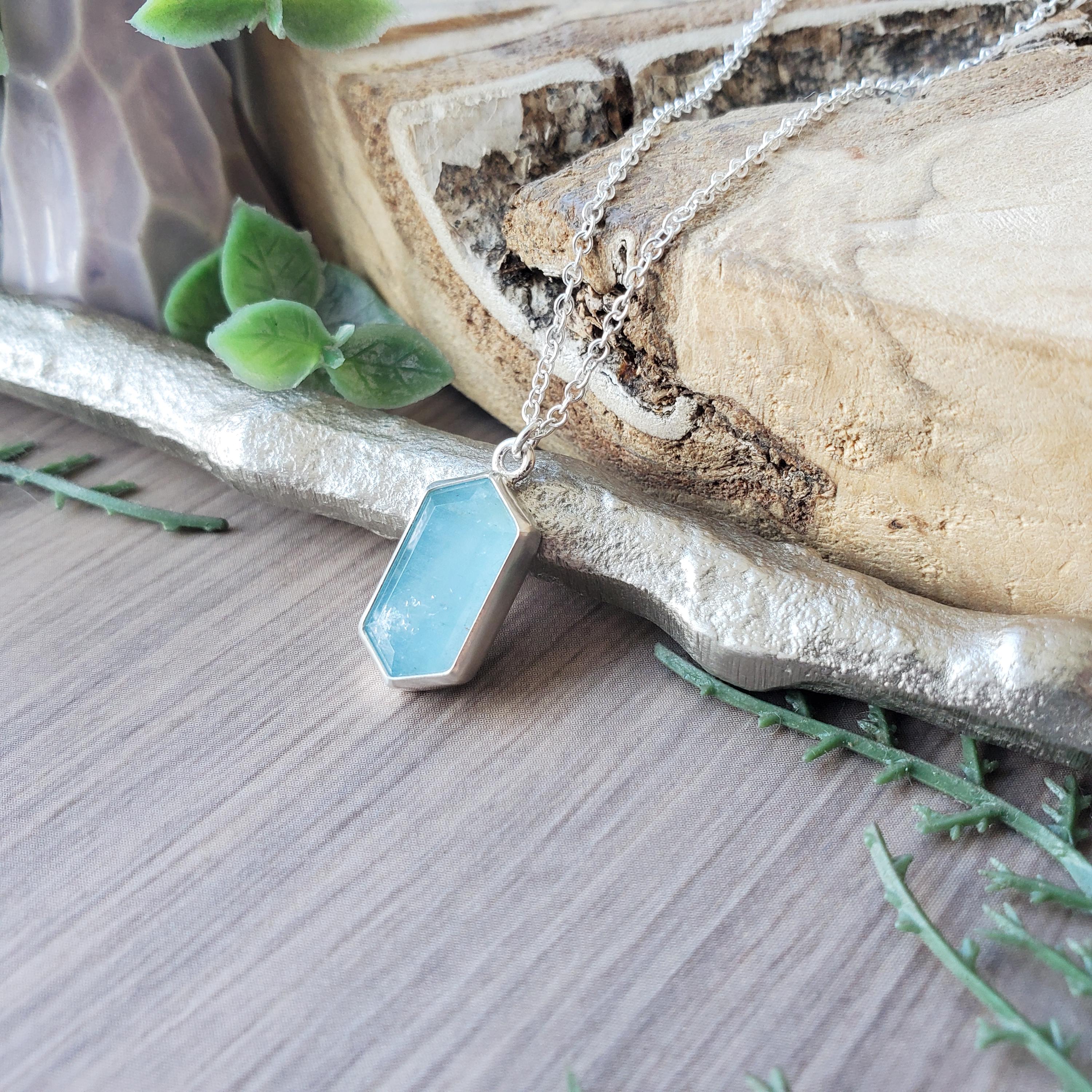 Aquamarine Necklace, Sterling Silver, Hexagon Aquamarine, March Nec...