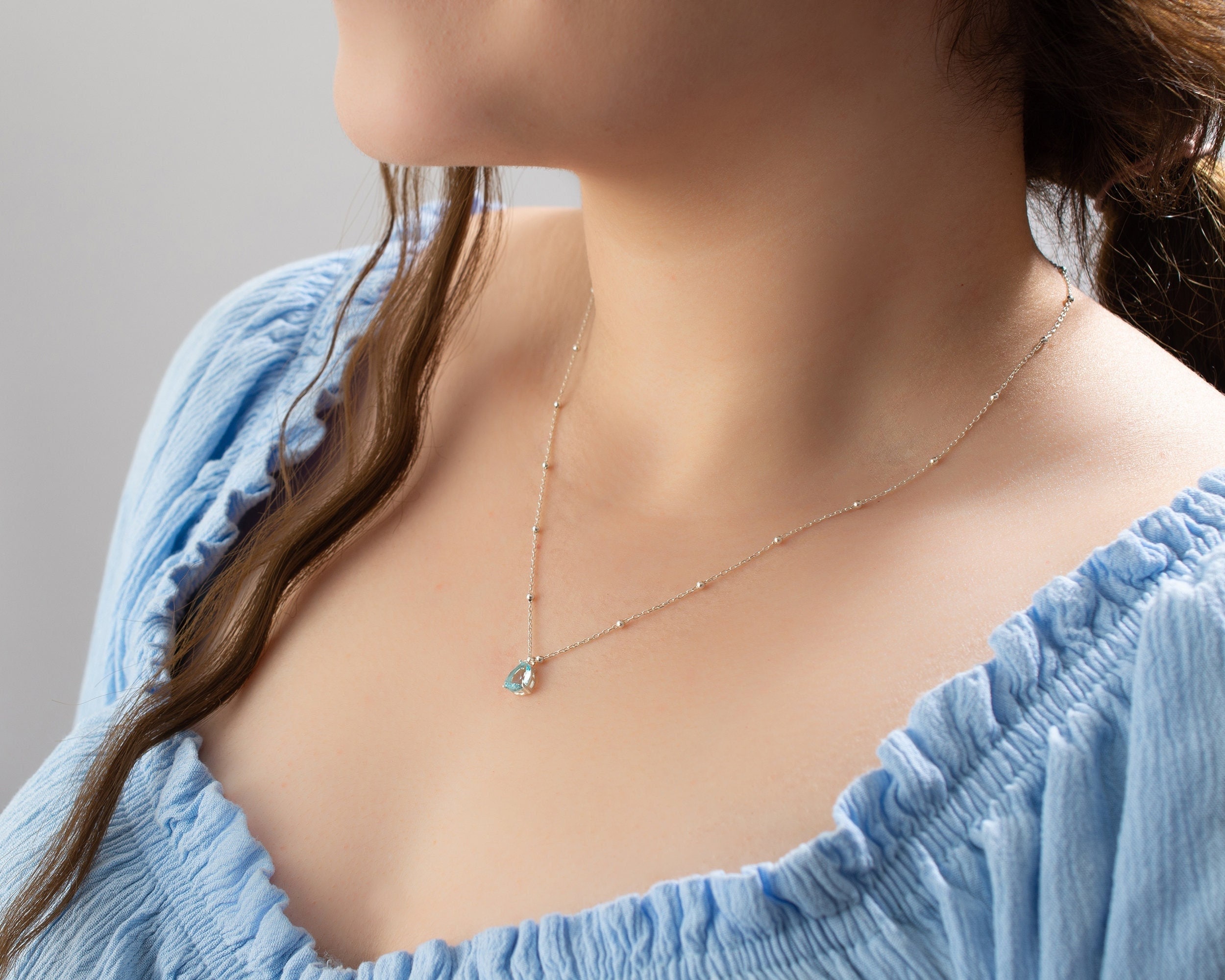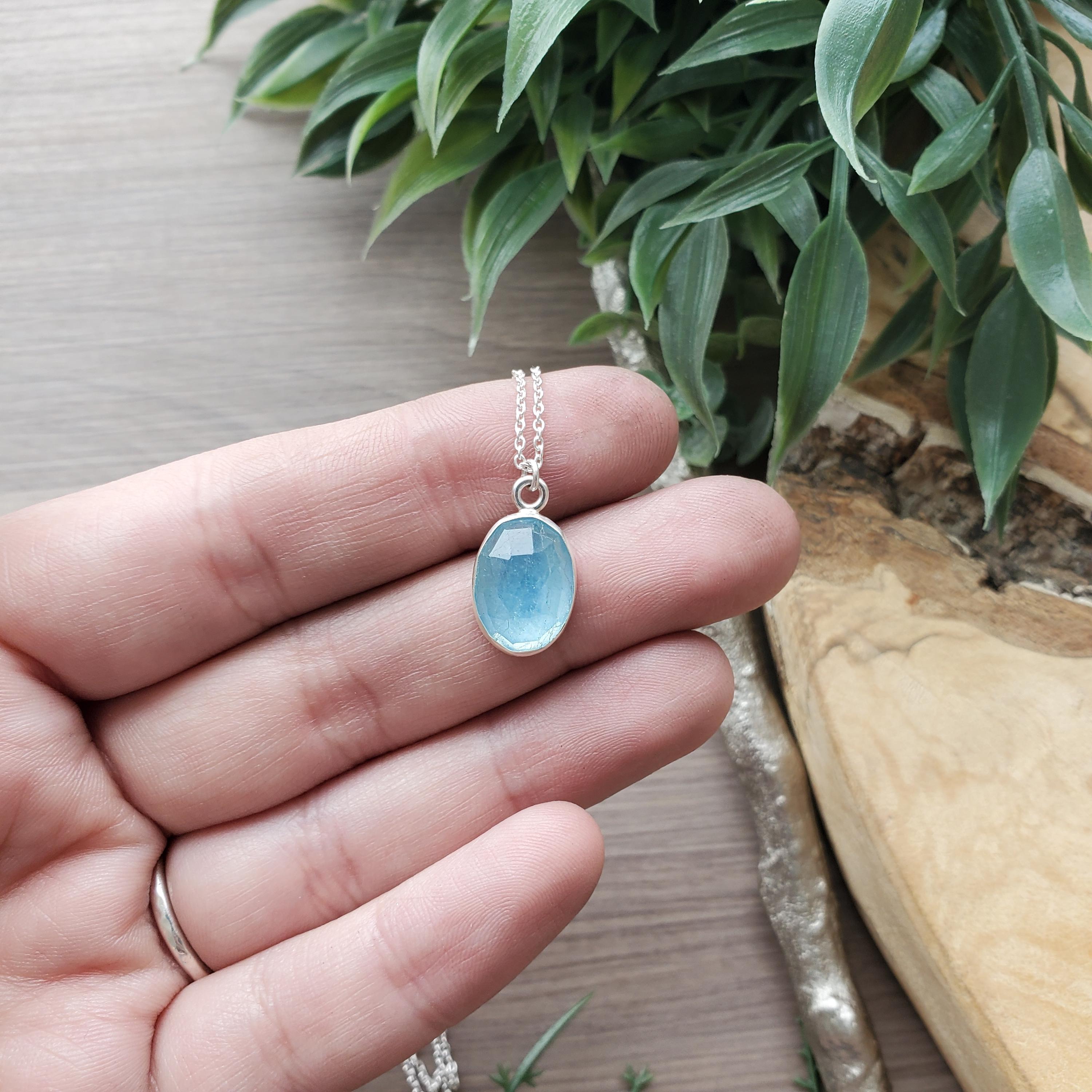 Aquamarine Necklace, Sterling Silver, March Birthstone, March Neckl...