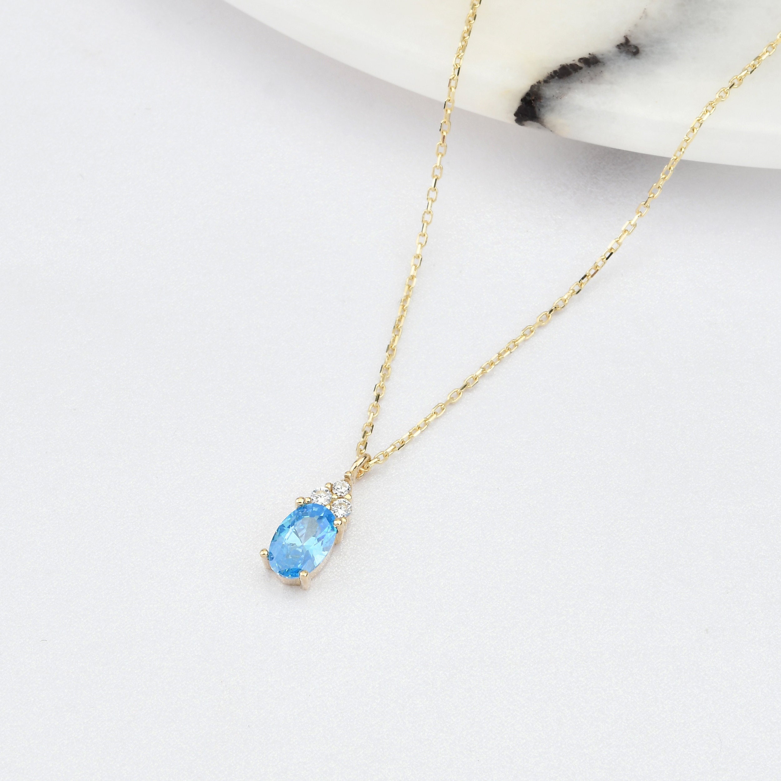March Birthstone Necklace, March Birthstone Gift For Teen Girl, Aqu...