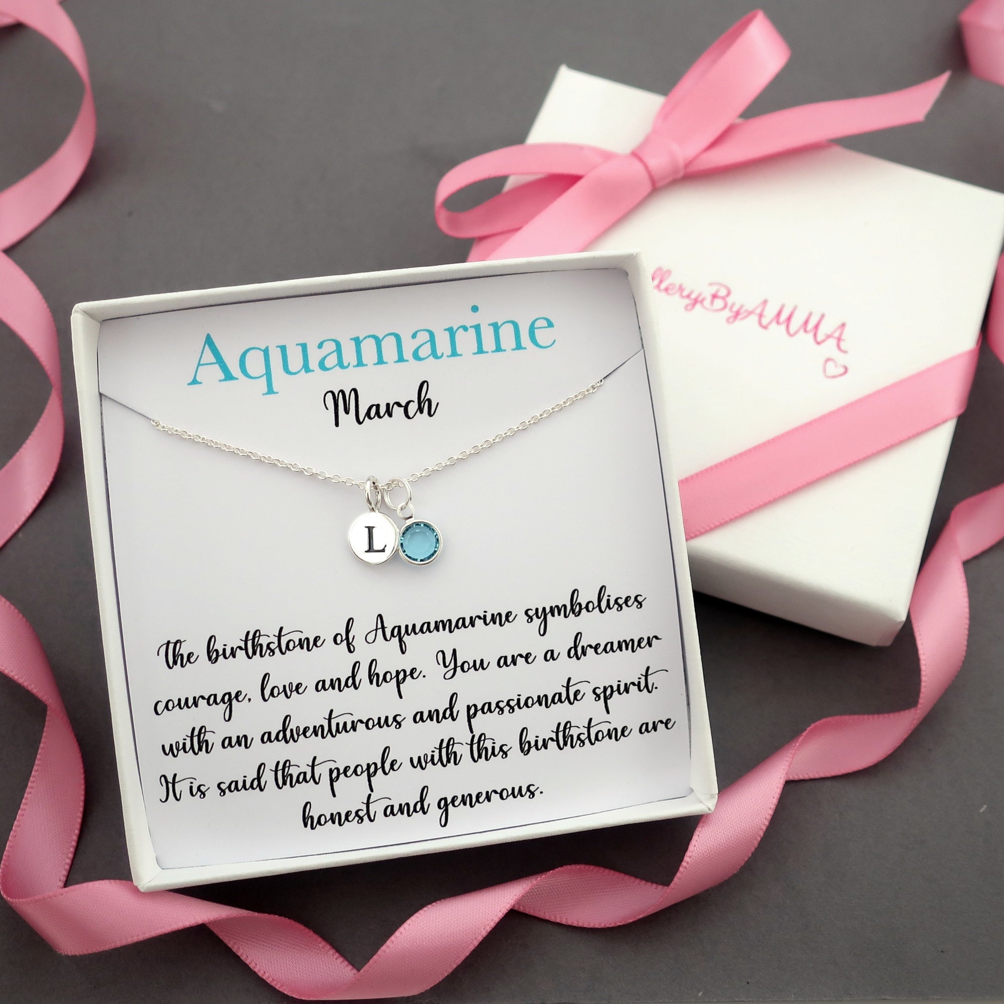 March Birthstone Necklace Sterling Silver, Personalised Initial &am...