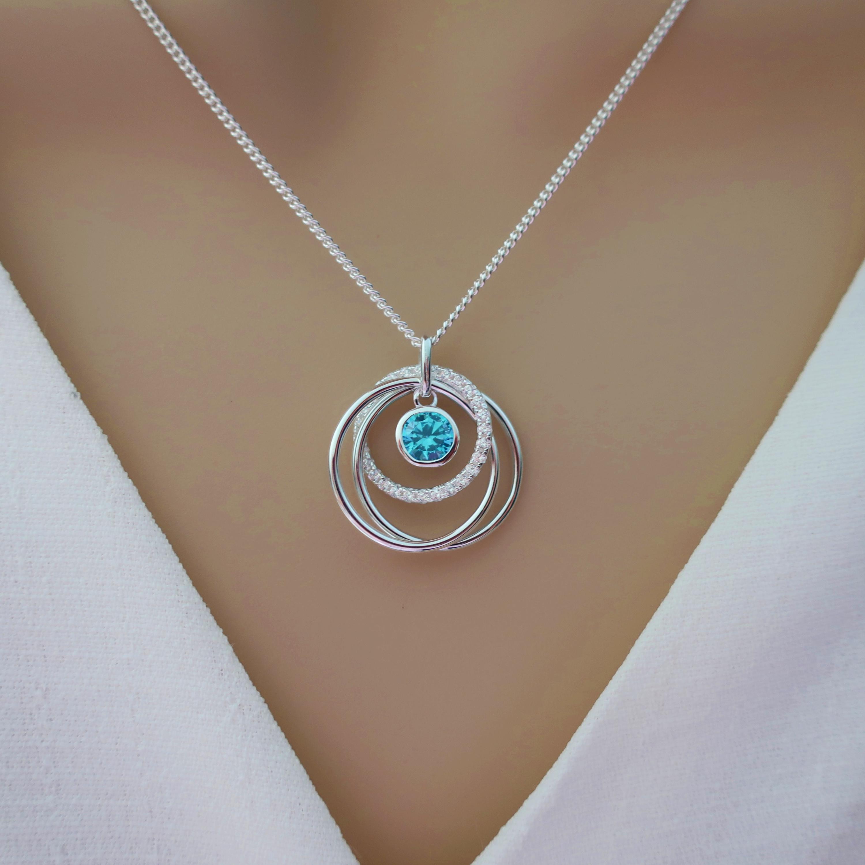 December birthstone necklace sterling silver, blue zircon necklace,...