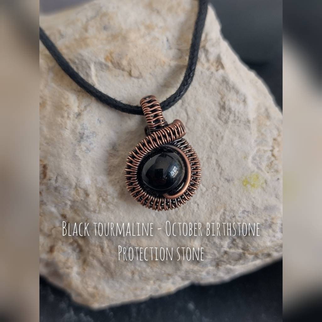 Black Tourmaline Pendant 8mm Black Tourmaline bead wrapped in copper wire with an intricate weave, t...