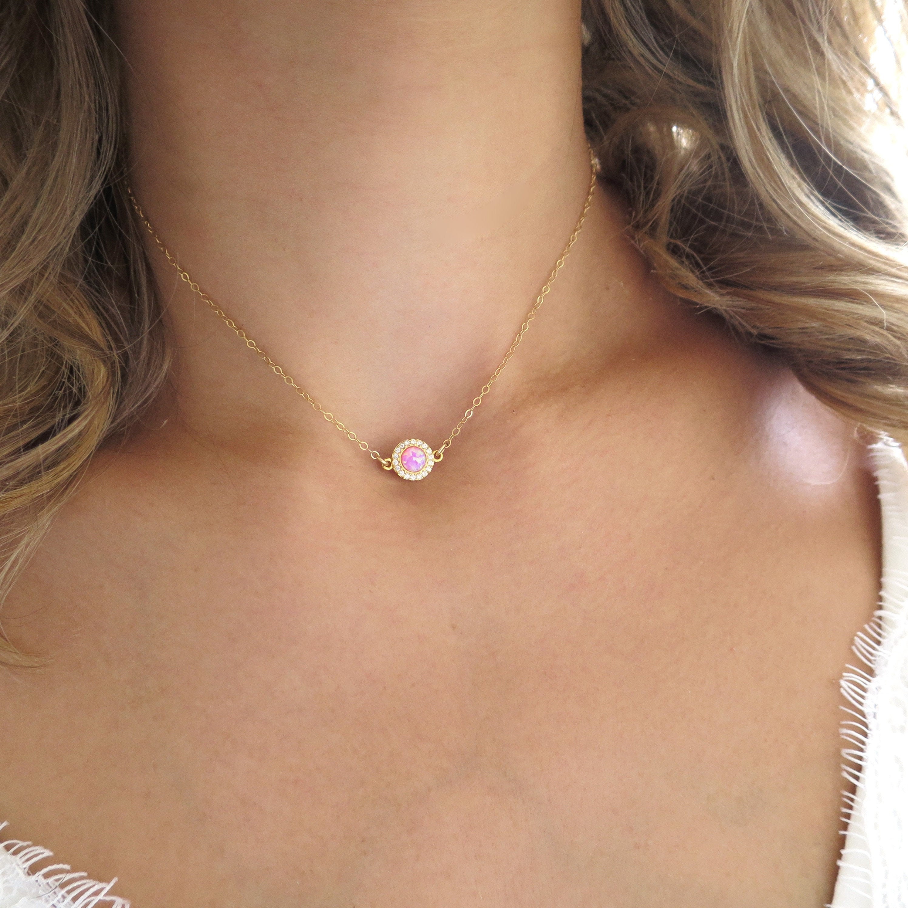 Gold Opal Necklace, Pink Opal Pendant, Opal Jewelry, October Births...