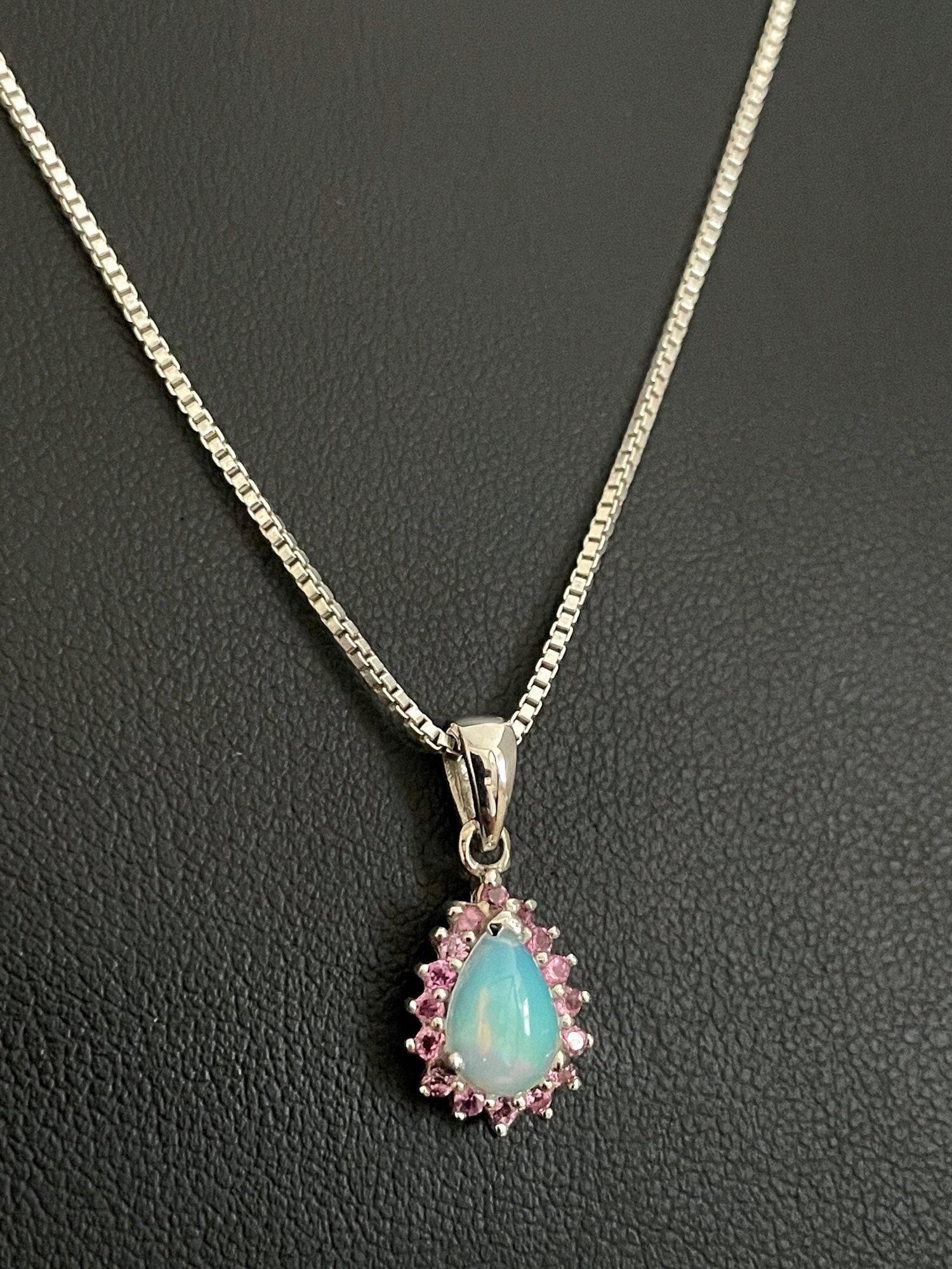 "Natural Ethiopian Opal & Rhodolite Garnet Necklace, Sterling Silver Opal Garnet Pendant, J...