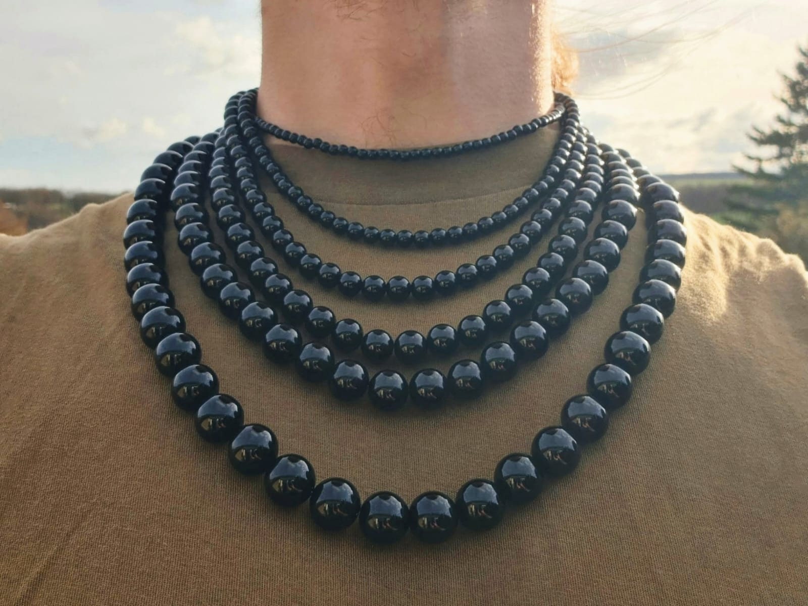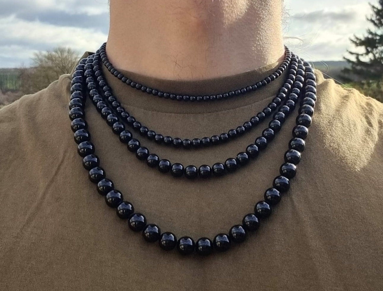Mens Black Necklace, Mens Black Bead Necklace, Black Beaded Necklac...