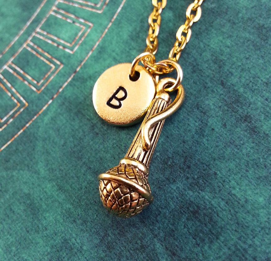 Initial Microphone Necklace, Microphone Necklace, Initial Charm Nec...