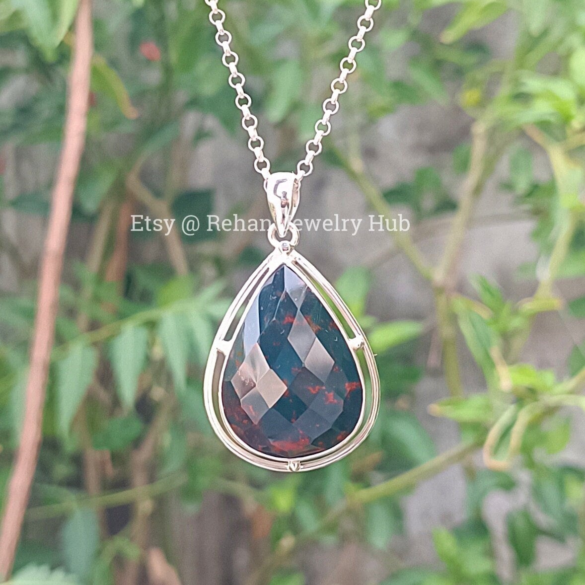 Bloodstone Pendants, Bloodstone Necklace, Gemstone Pendant, Sterlin...