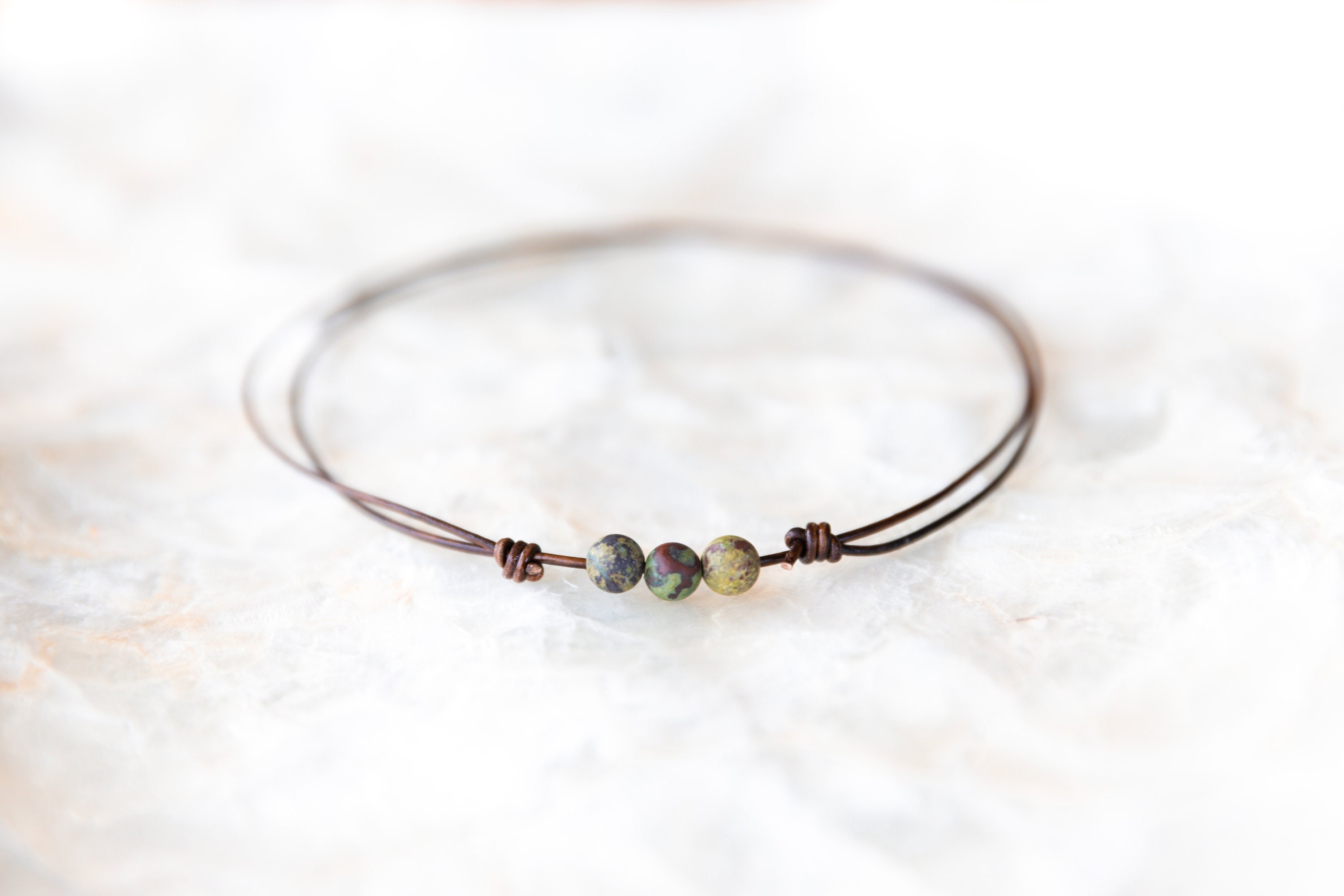 Dragon Blood Jasper Necklace, Leather Choker, Hippie Crystal Neckla...