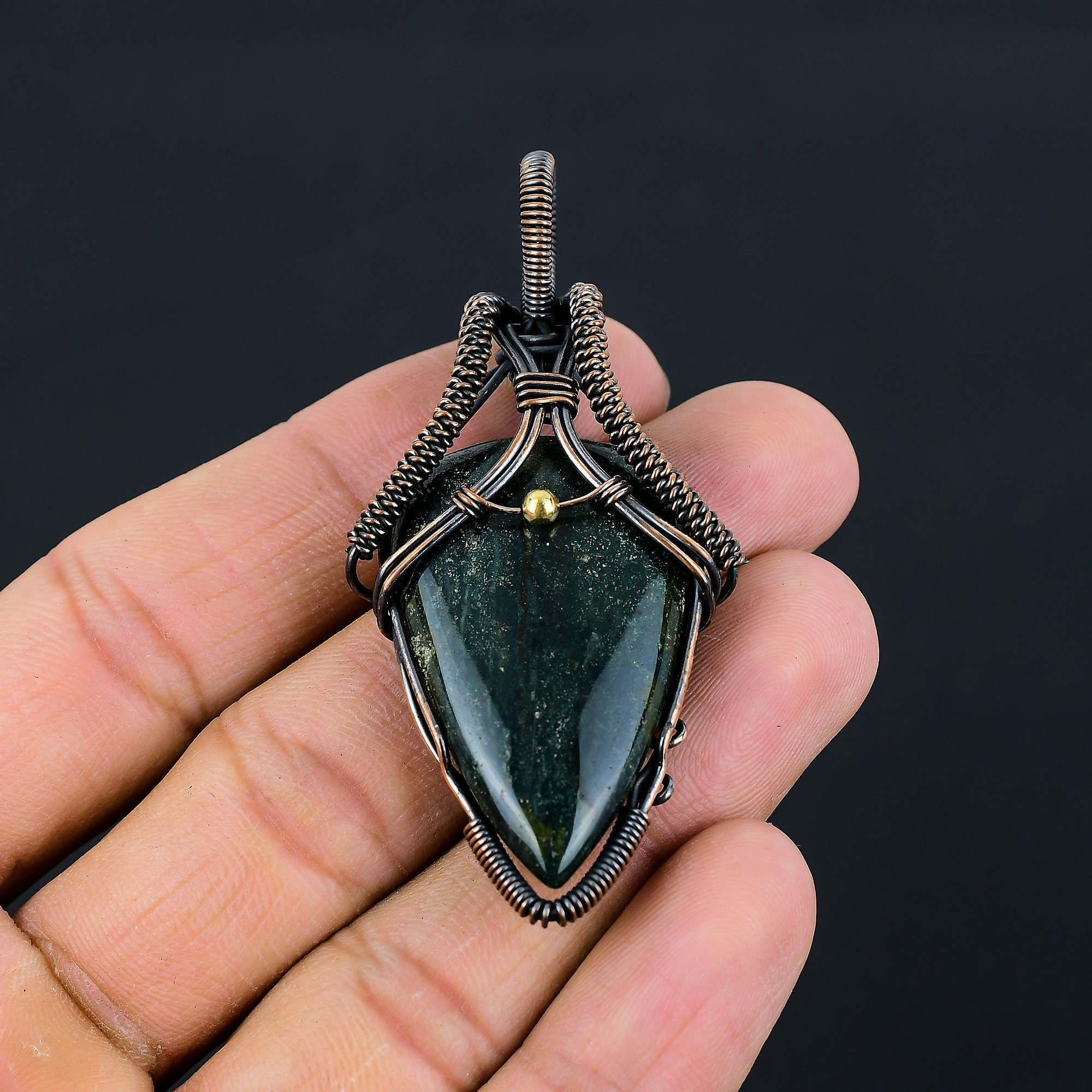 Bloodstone Pendant Copper Wire Wrapped Pendant Jewelry Copper Jewel...