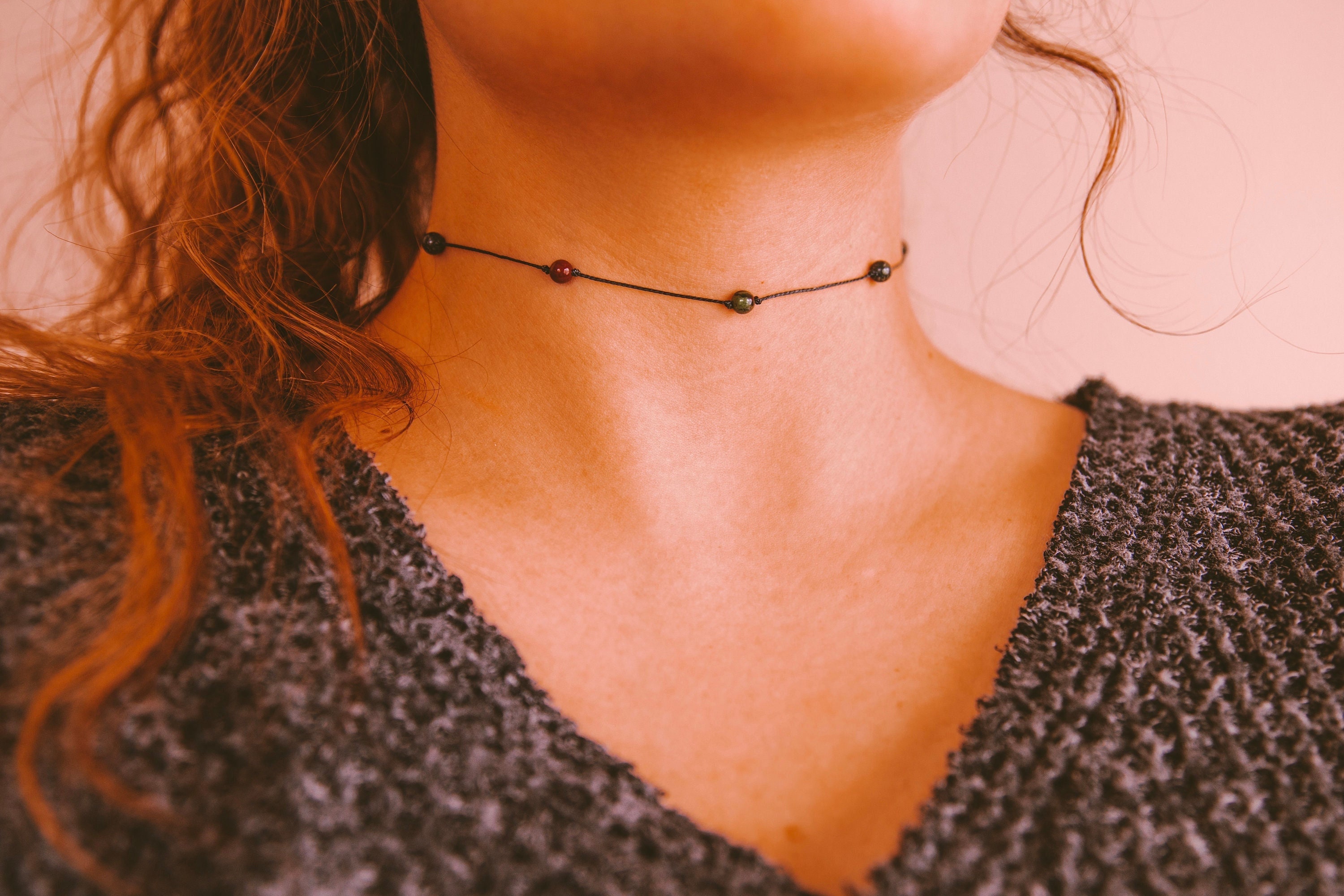 Bloodstone Choker Necklace / Dragon Bloodstone Jasper 2mm Subtle Beads Crystal Gemstone Stunning Nec...