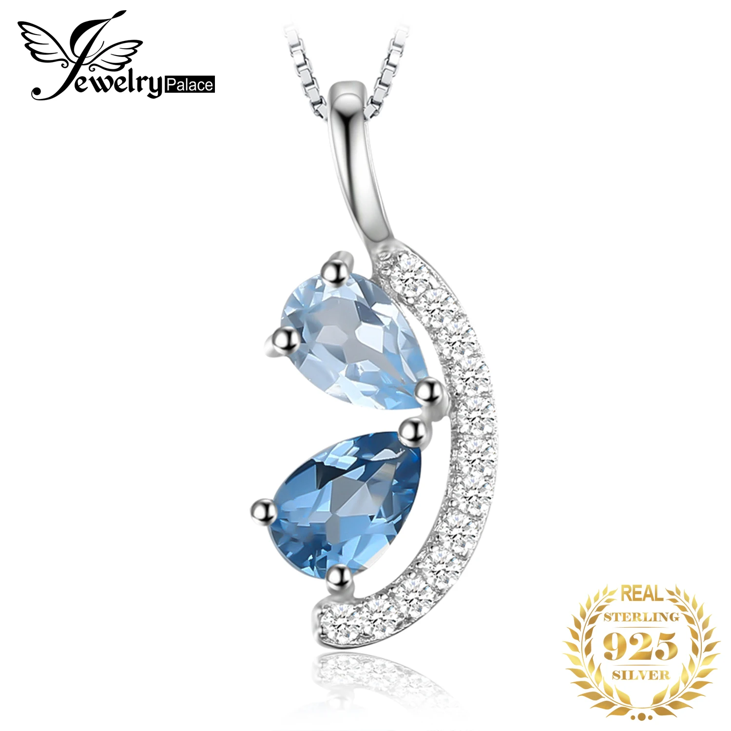 JewelryPalace Natural Sky London Blue Topaz 925 Sterling Silver Pendant Necklace for Woman Fashion G...