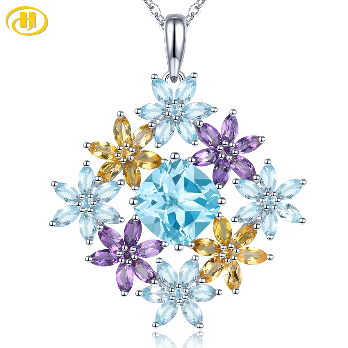 Natural Blue Topaz Solid Sterling Silver Pendant Genuine Multicilor Amethyst Citrine Romantic Elegan...