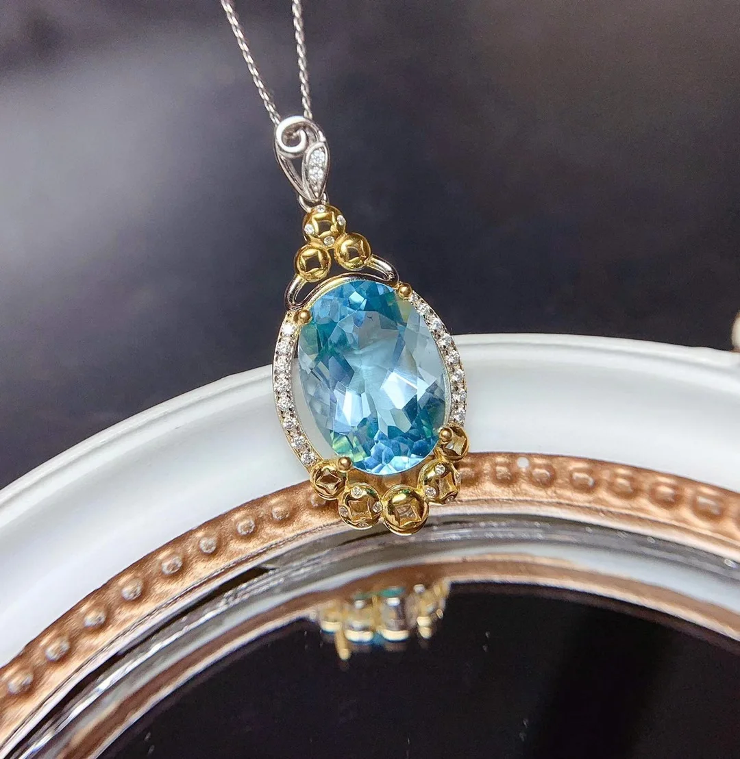 New 2021 Pure Natural Blue Topaz Pendant S925 Carat Necklace Colgan...