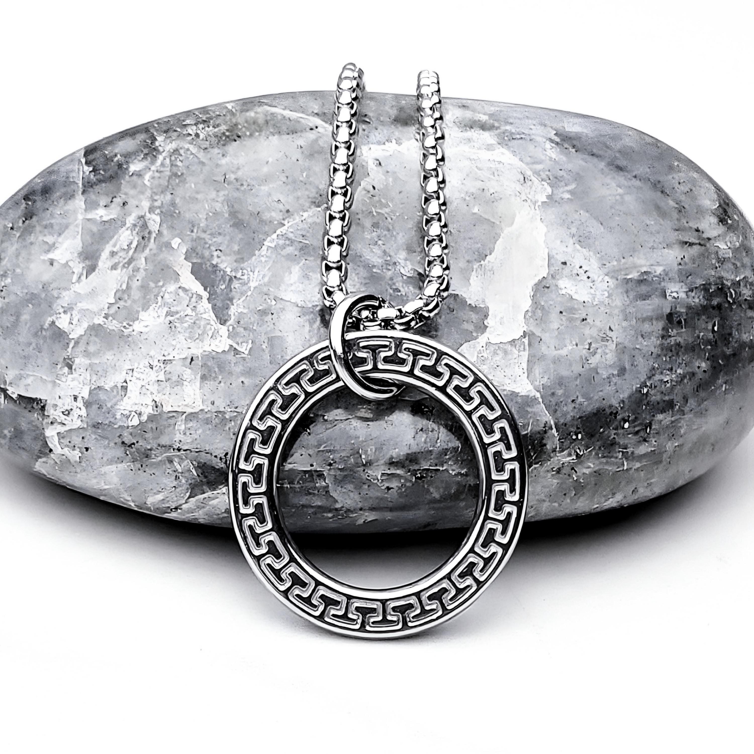 Men's GREEK KEY RING Necklace | Men's Silver Stainless Steel Greek ...