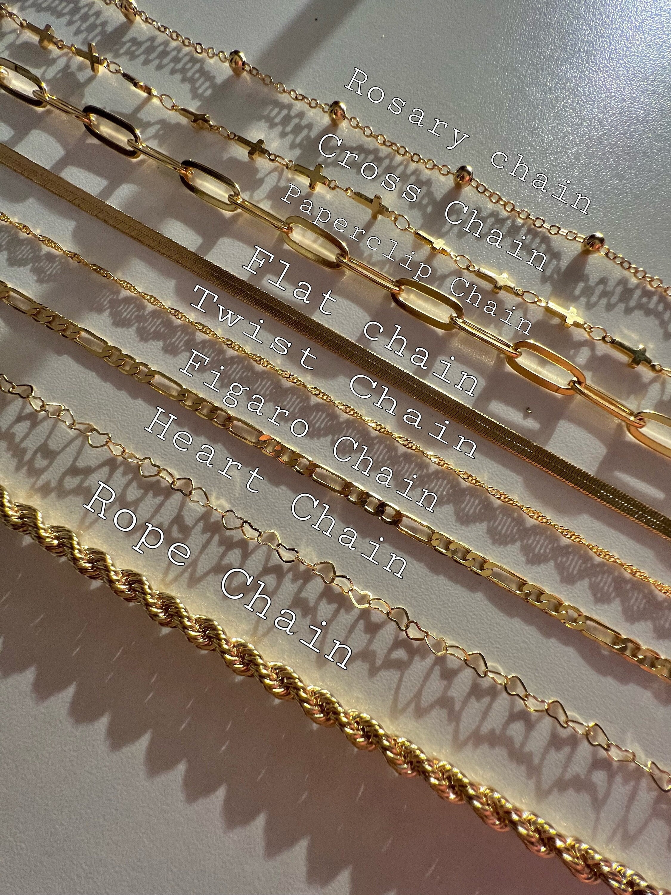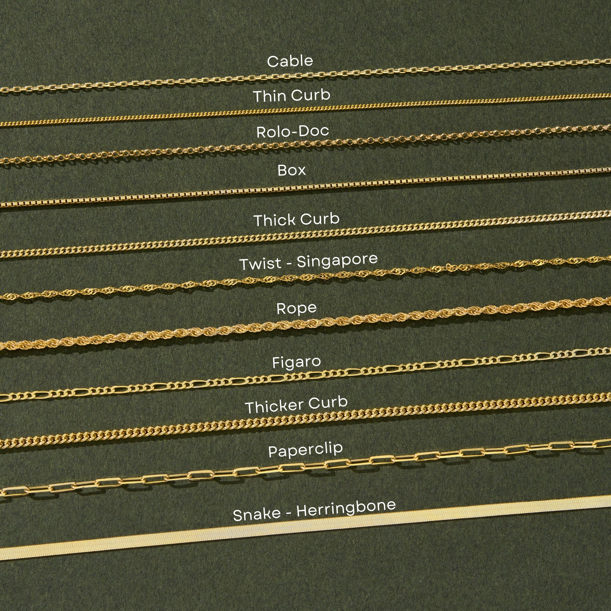 18k Gold Chain Necklace, Cable Chain, Curb Chain, Twist Chain, Figa...