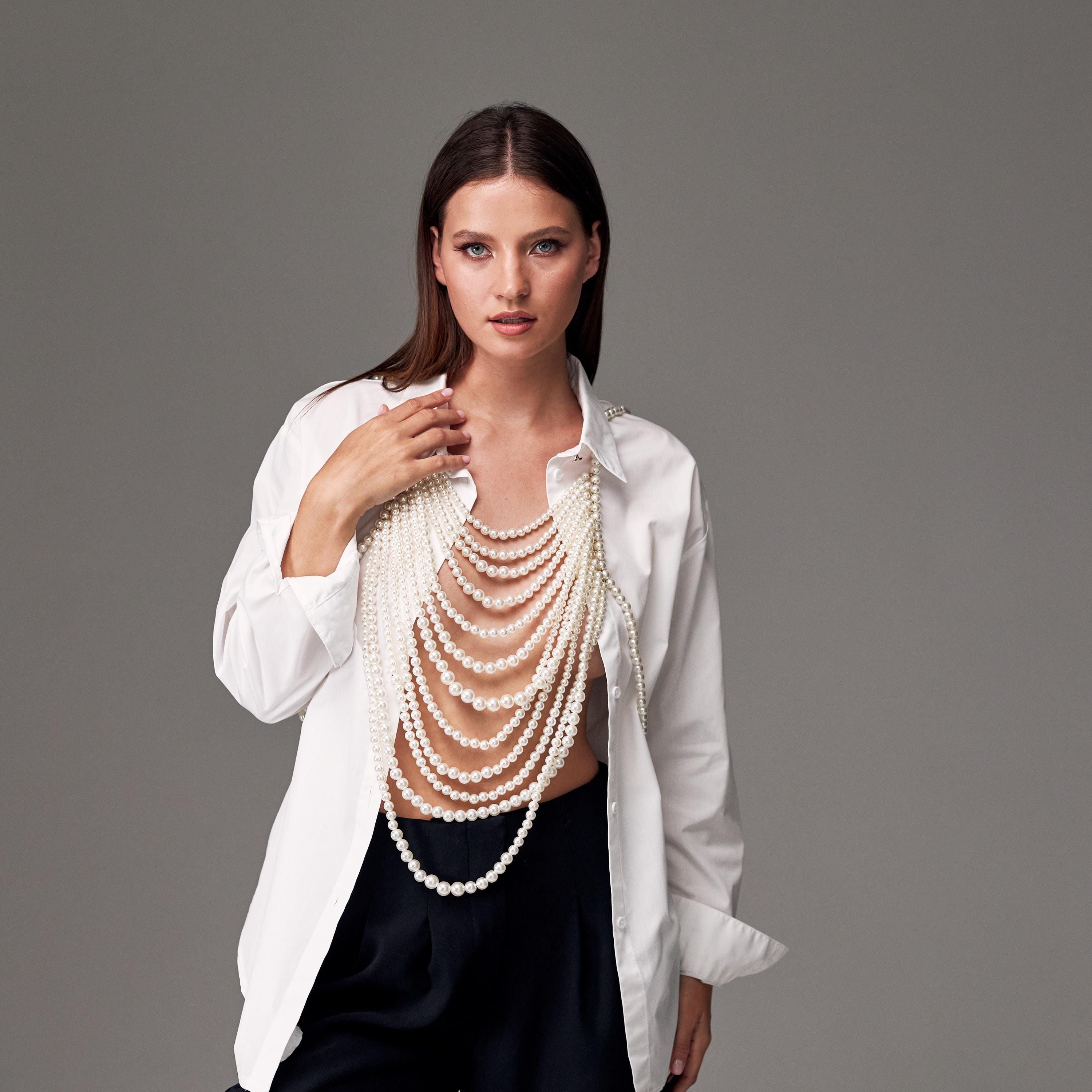 Pearl collar choker, Pearl necklace long, Shoulder jewelry, Shoulde...