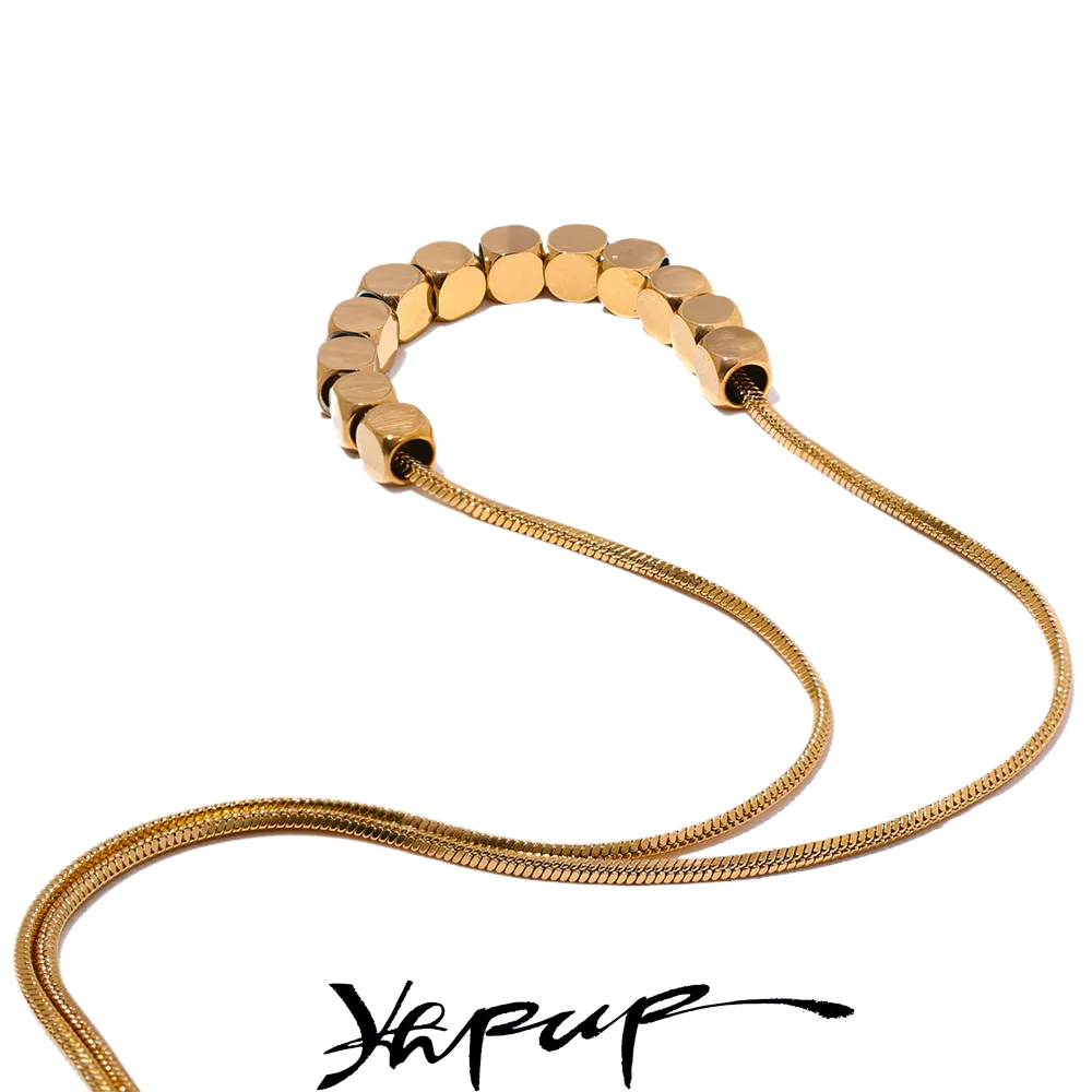 Yhpup Fashion Stainless Steel Square Beads Chain Necklace Pendant Waterproof 18K PVD Plated Collar J...