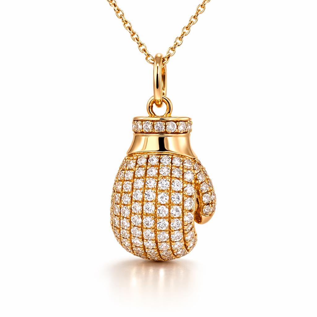 14k Gold Mini Diamond Boxing Glove Pendant Necklace Celebrate strength and style with this mini boxi...