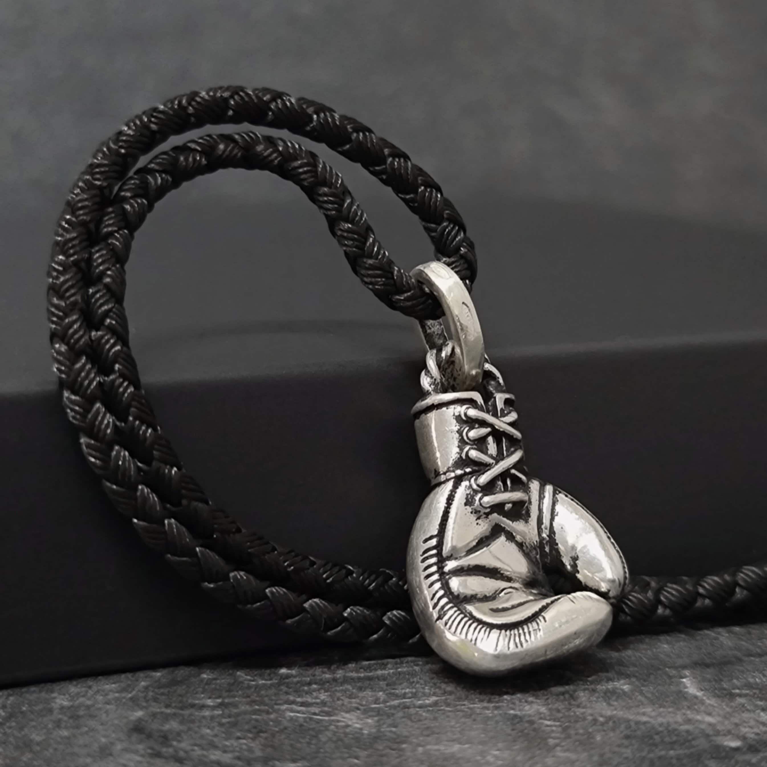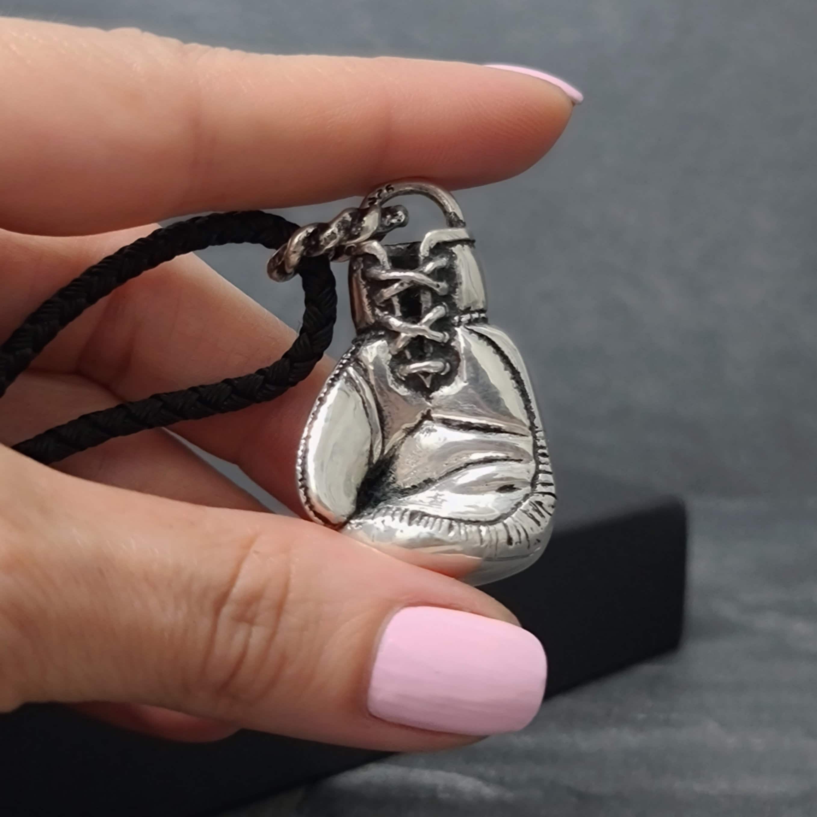 Large sterling silver boxing glove pendant Handmade boxing glove ne...