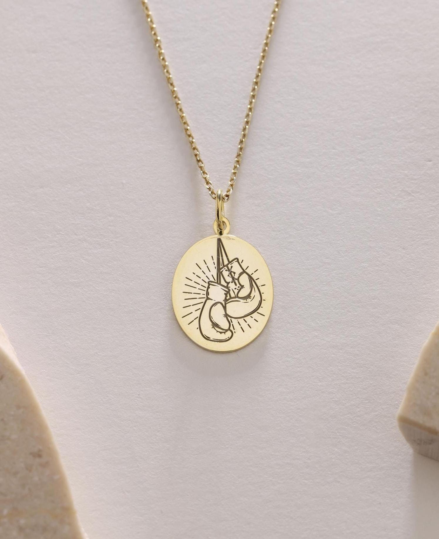 "Product Description: Ward off negativity and embrace protection with our 14k Real Gold Boxing ...