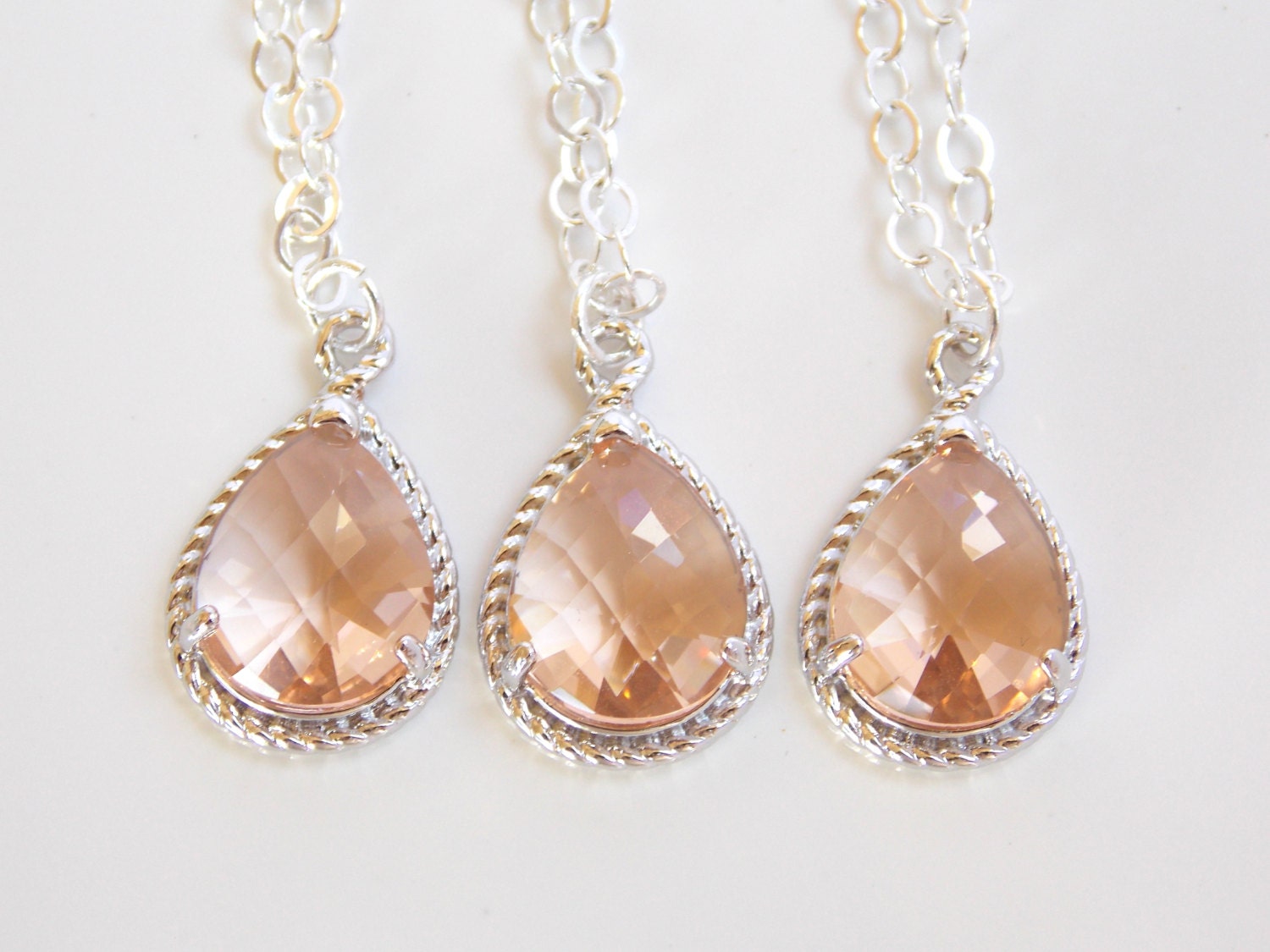Bridesmaid Jewelry, Peach Necklace, Champagne, Blush, Sterling Silv...