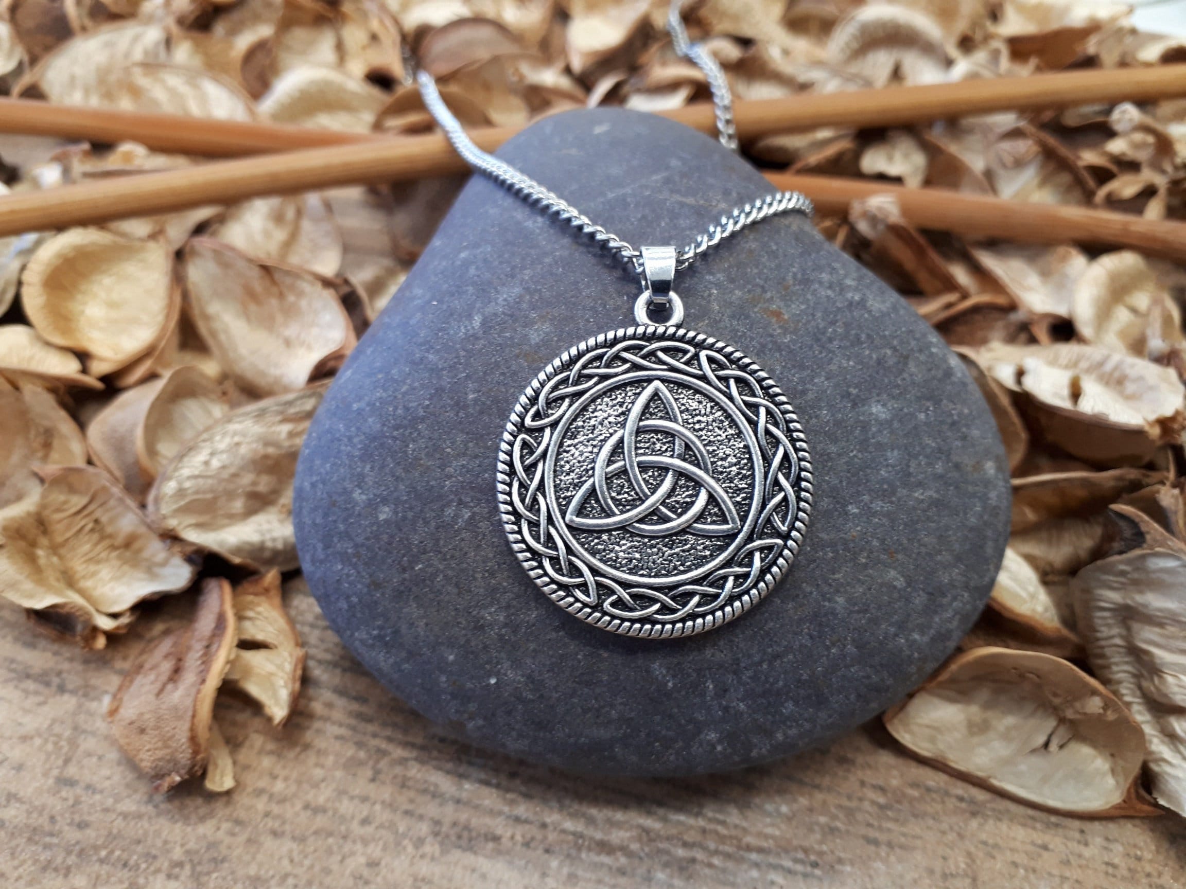 Silver Celtic Sister Knot Charm Necklace. Gaelic pendant Trinity Ba...