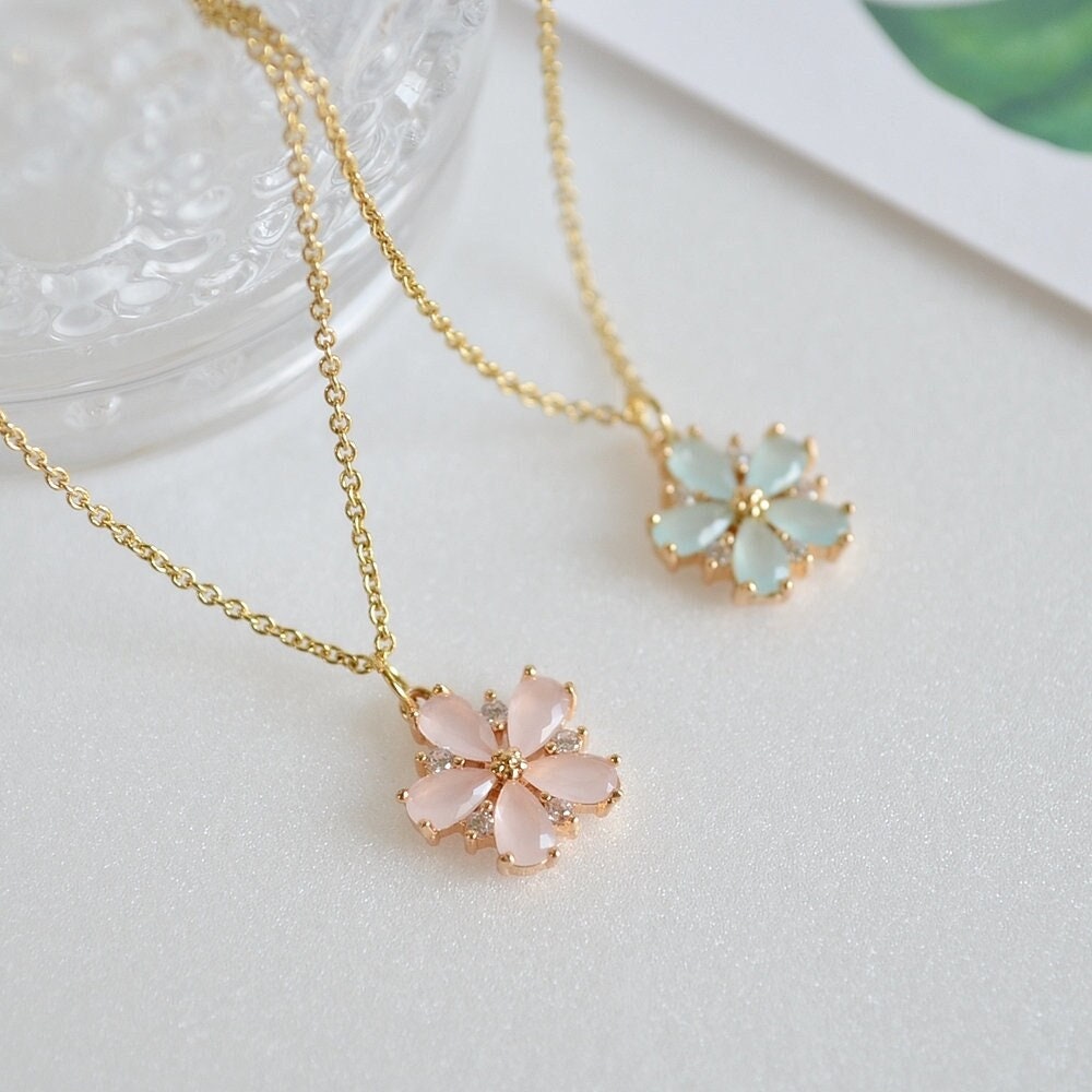 Personalized Cherry Blossom Necklace, Flower girl gift, Bridesmaid ...